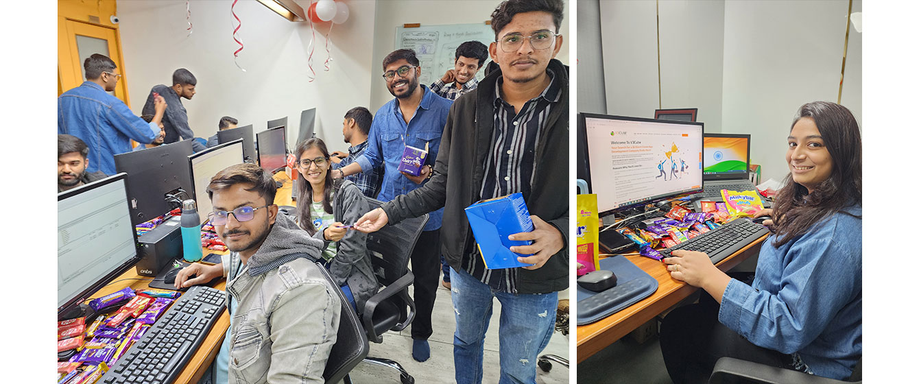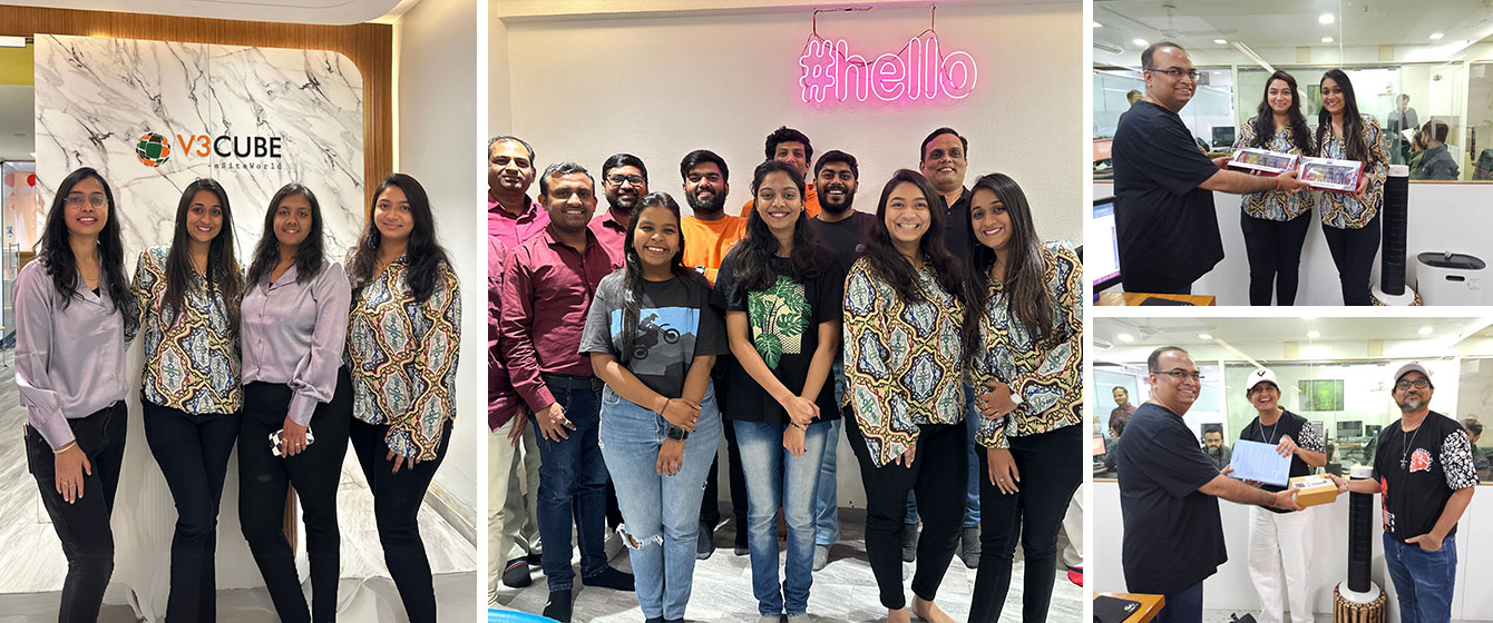 Vintage Denim Look at V3Cube: Sweet Threads and Sweeter Bonds. At V3Cube, we rocked Denim Day with retro vibes and trendy styles, making it a fashion fiesta! But the cherry on top was our Chocolate Exchange Day - a sugar rush of love and joy! Each V3Cuber came bearing chocolates to share, creating a deliciously sweet bond that filled the air with warmth and togetherness. From denim dazzle to chocolate galore, we proved that life at V3Cube is as lovely as it gets! Here, we don't just work - we create moments worth cherishing!