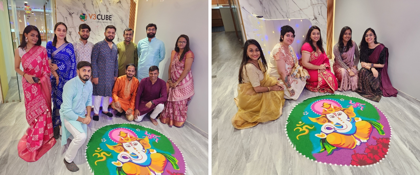 Bonds grew stronger as the games kicked off, and the room buzzed with energy. Snapshots and selfies flooded our feeds, capturing every fun moment. With the team bonding vibe, some even got prizes, adding a little extra sparkle to the day. It was more than just a celebration of outfits—it was a celebration of unity, creativity, and the joy of working together at V3Cube. It was a day to remember, wrapped in laughter, teamwork, and unforgettable memories!Gift Hampers, Making Rangoli, Candid Pictures Our Festive Diwali This Year - October 2024