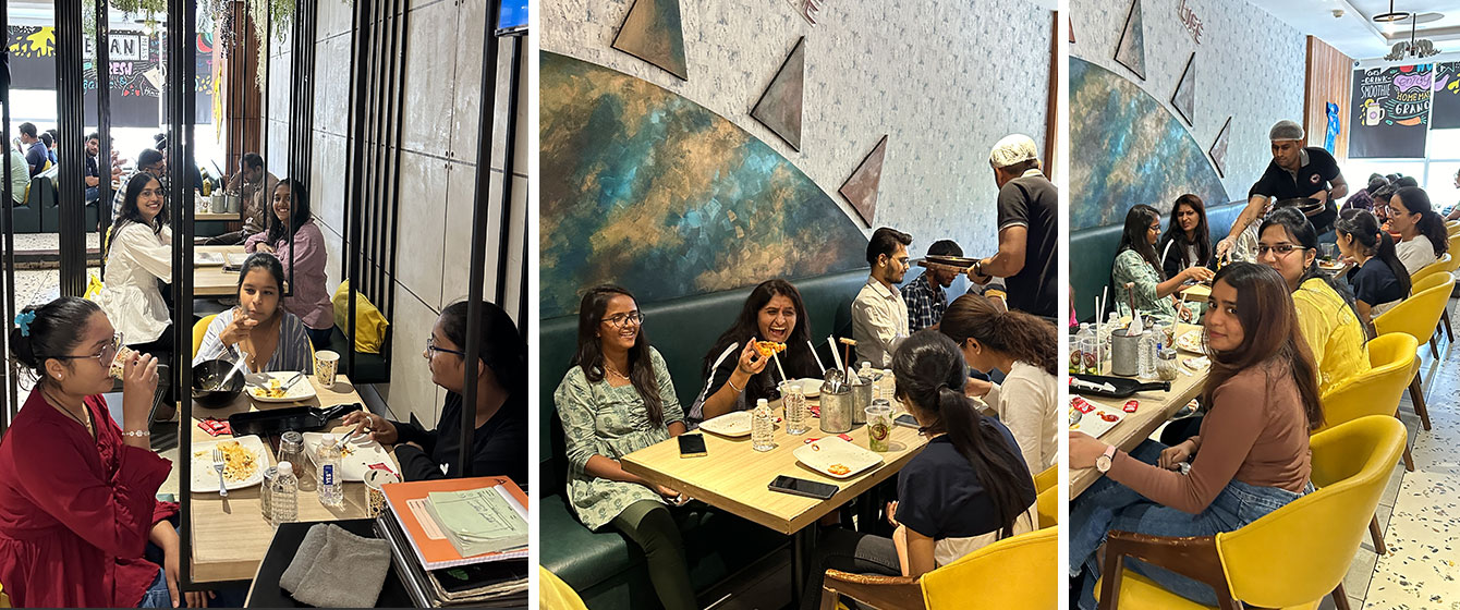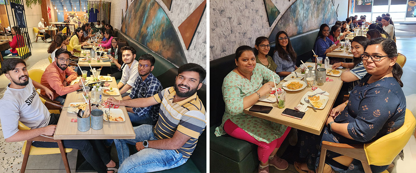 Who doesn't enjoy a nice lunch hangout with coworkers to share thoughts and have a laugh? At V3Cube, we make sure to balance out the workload with some fun foodie gatherings. It's a great way to shake up that monotonous daily routine by bringing together people from different teams and backgrounds to create a lively, refreshing atmosphere - something to actually look forward to. You'd be surprised how quickly friendships can blossom over authentic Italian pasta, garlic bread, pizza, and tasty desserts when you're just casually snacking and chatting it up with your office mates.