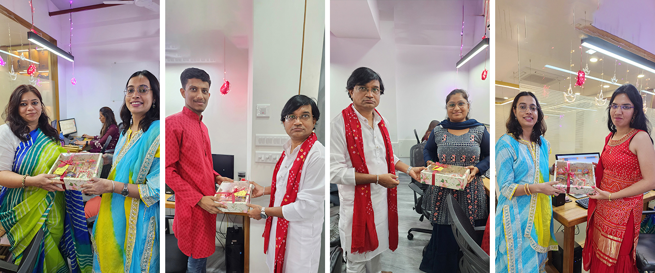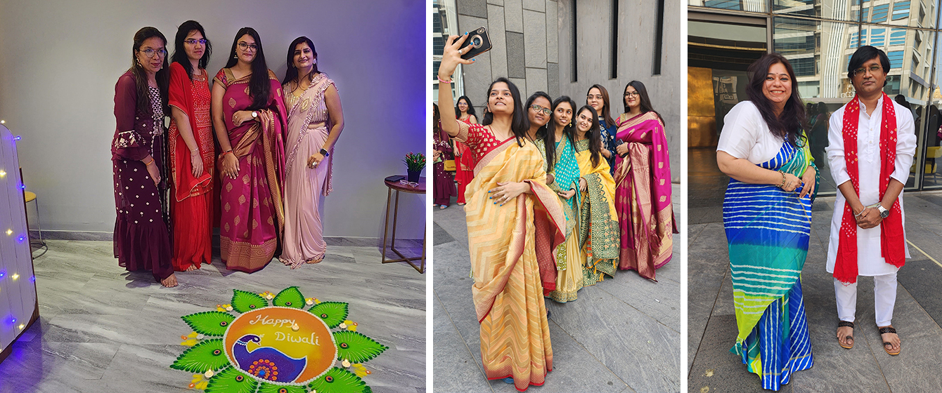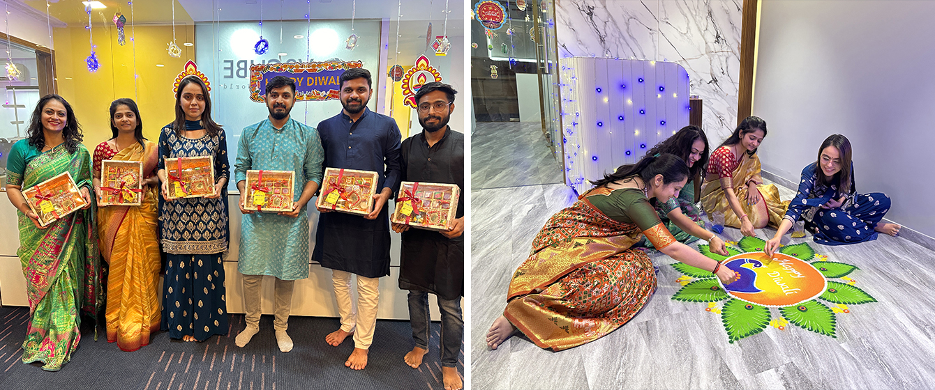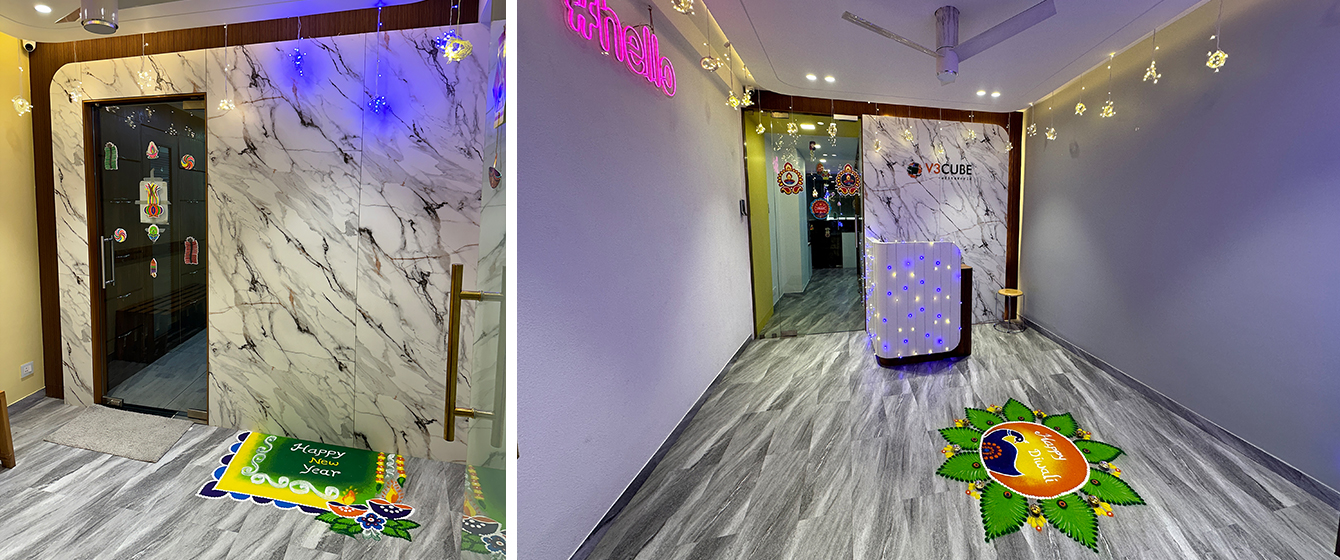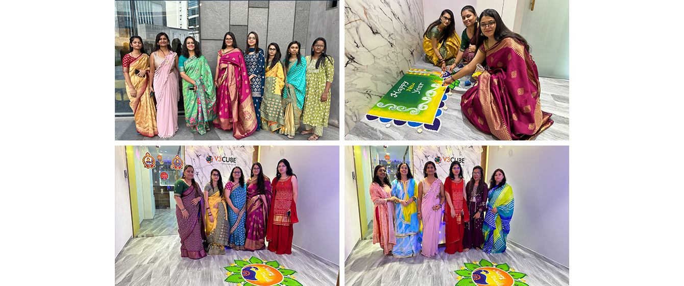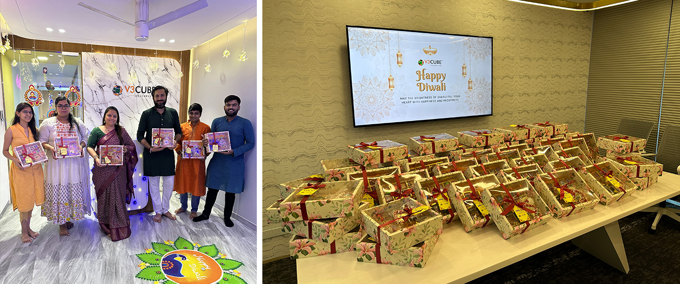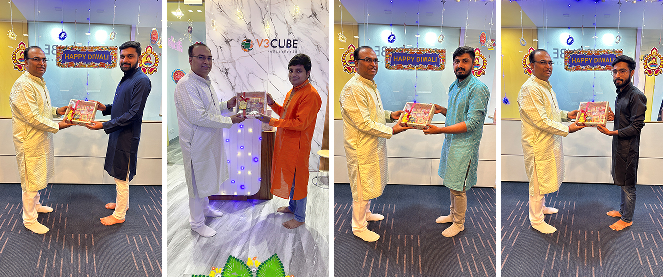 V3Cube's Diwali Celebration was filled with delicious food, selfies, beautiful rangolis, gift hampers, and some stunning festive office makeover! This celebration was all about enjoying the day with the team and making the bond even stronger! Catch a glimpse of how lovely everybody looked all-decked up in traditional wear and how V3Cube’s Head Office was turned into an amazing festive wonderland! The happy faces of our team members truly reflect that everyone had a great time celebrating the Festival of Lights and the win of good over evil with all their hearts.