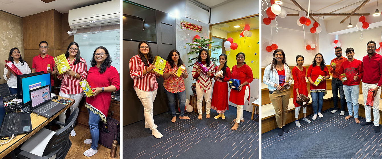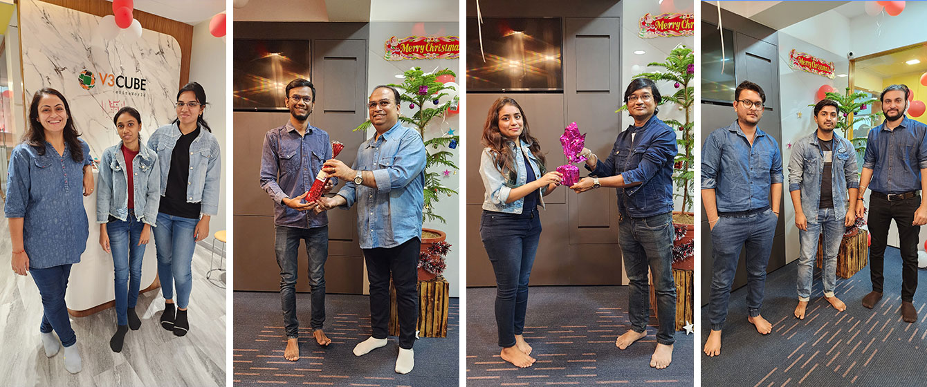 Our Office turned into a Winter wonderland as we celebrated Christmas on the 25th. The entire V3Cube team rocked the Festive Vibes in Red and White Outfits.