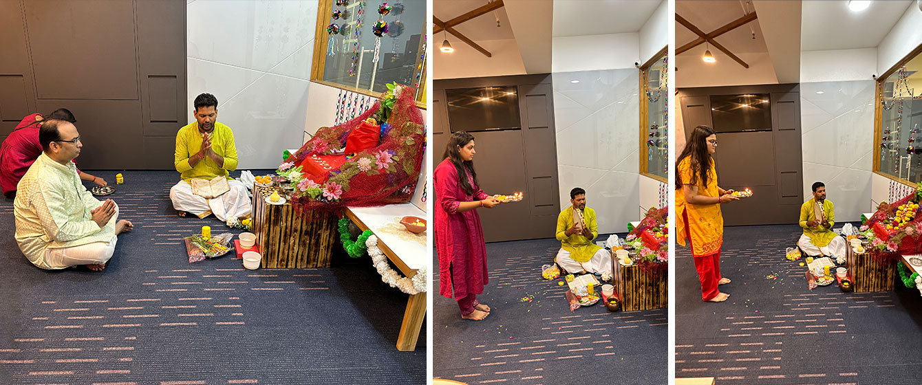 The entire workspace echoed with chants and joyful whispers of “Ganpati Bapa Morya” as the team performed the Ganesh Sthapna Rituals.