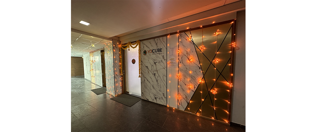 Adorned with Colorful Ribbons, Lights, and Flowers, V3Cube’s Head Office Was all set to welcome the deity of Wisdom wholeheartedly on the auspicious occasion of Ganesh Chaturthi.
