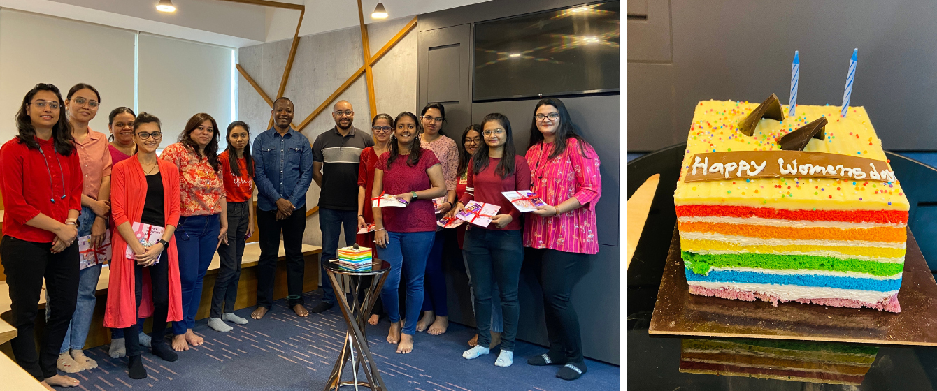 Our superwomen had fun gulping the delicious cake, clicking pictures in their pink and red attire, and laughing at the top of their voices! To make the event even more memorable, our clients from West Africa also joined us at our headquarters.Celebrating Holi With Colorful Platters Of Delicacies - March 2023