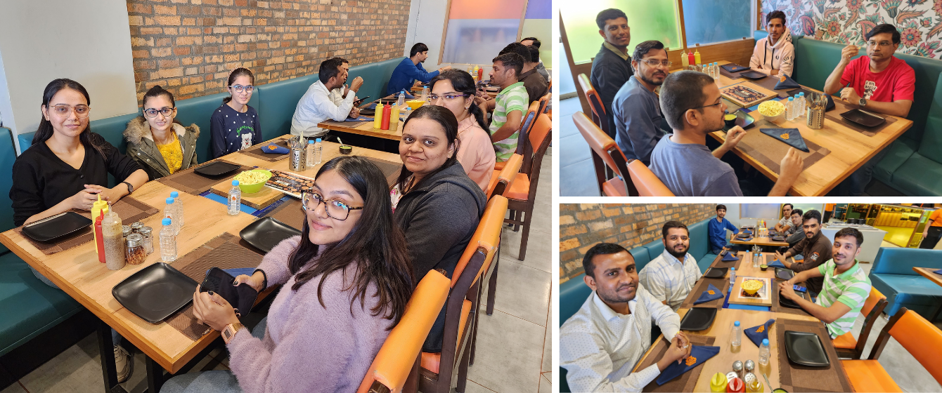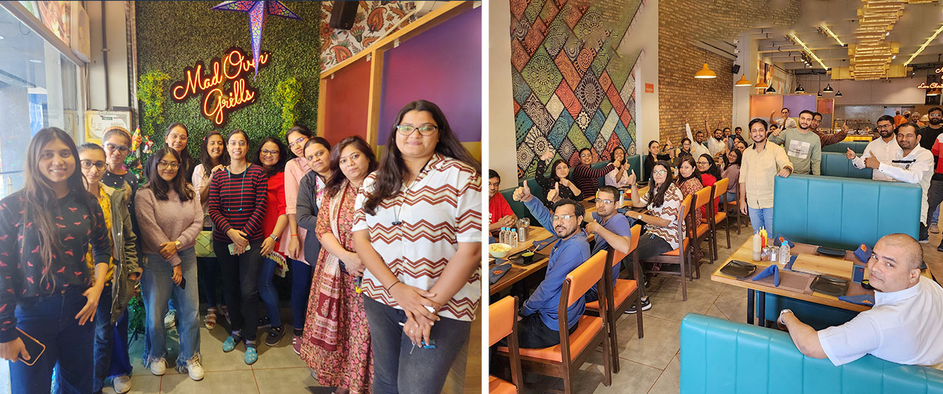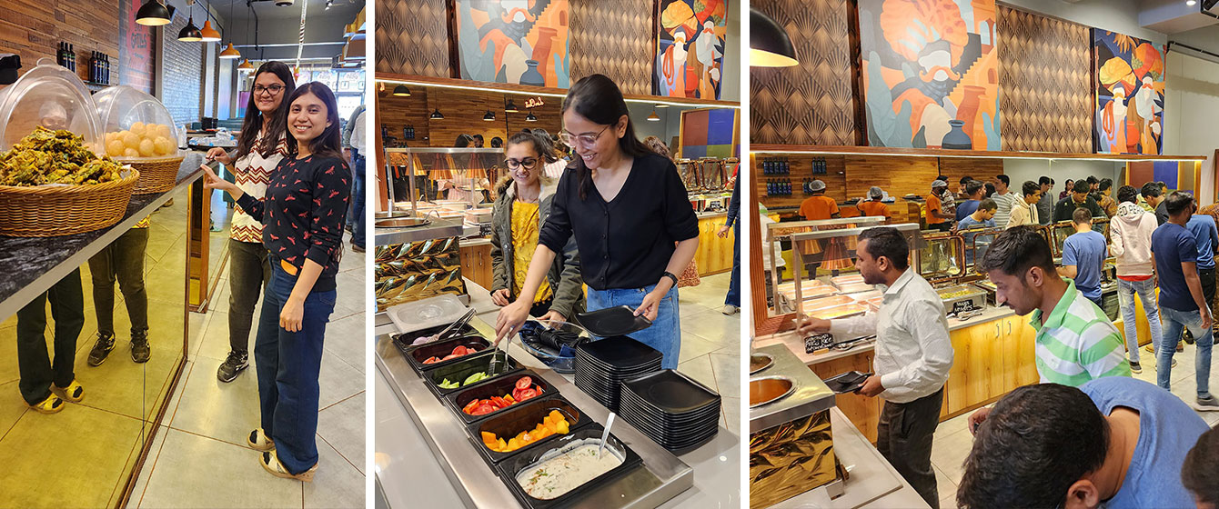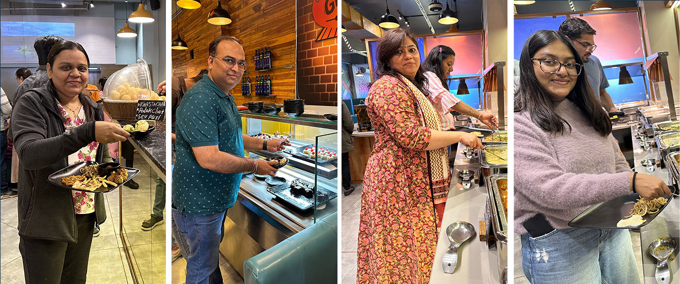 V3Cube is cheerfully bidding goodbye to 2022 by clicking loads of photos, enjoying lots of food, and spilling their undying love for pasties! Today, the entire team gathered over lunch to celebrate and capture one last memory before 2022 ends. Every V3Cubian is ready to enter the New Year 2023 with their mouths full of barbequed veggies, pizzas, naan, chaat, and yes, bowls of ice creams and brownies. These photographs say out loud that everyone enjoyed stuffing their mouths with drooling, lip-smacking food while gossiping around. Well, in between all the hard work of delivering top-notch apps, V3Cube finds a way to laugh and giggle, and squeeze in some team bonding time over lunch parties!
