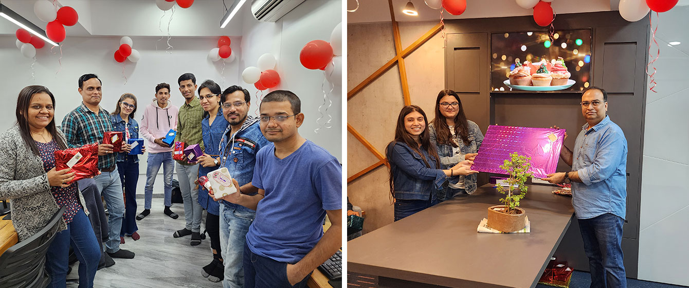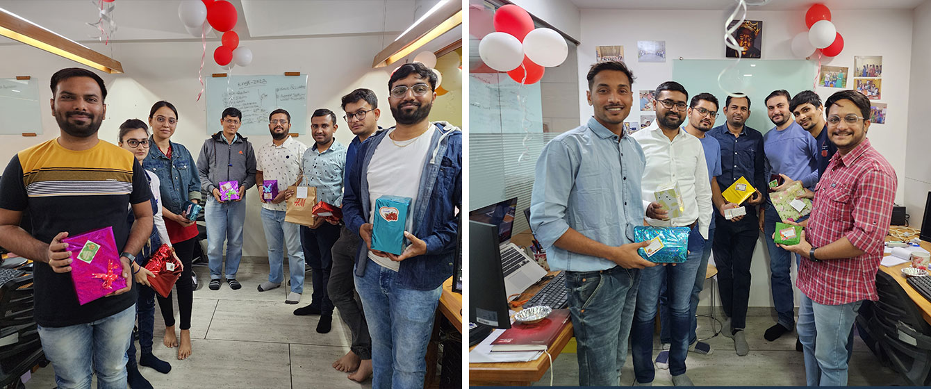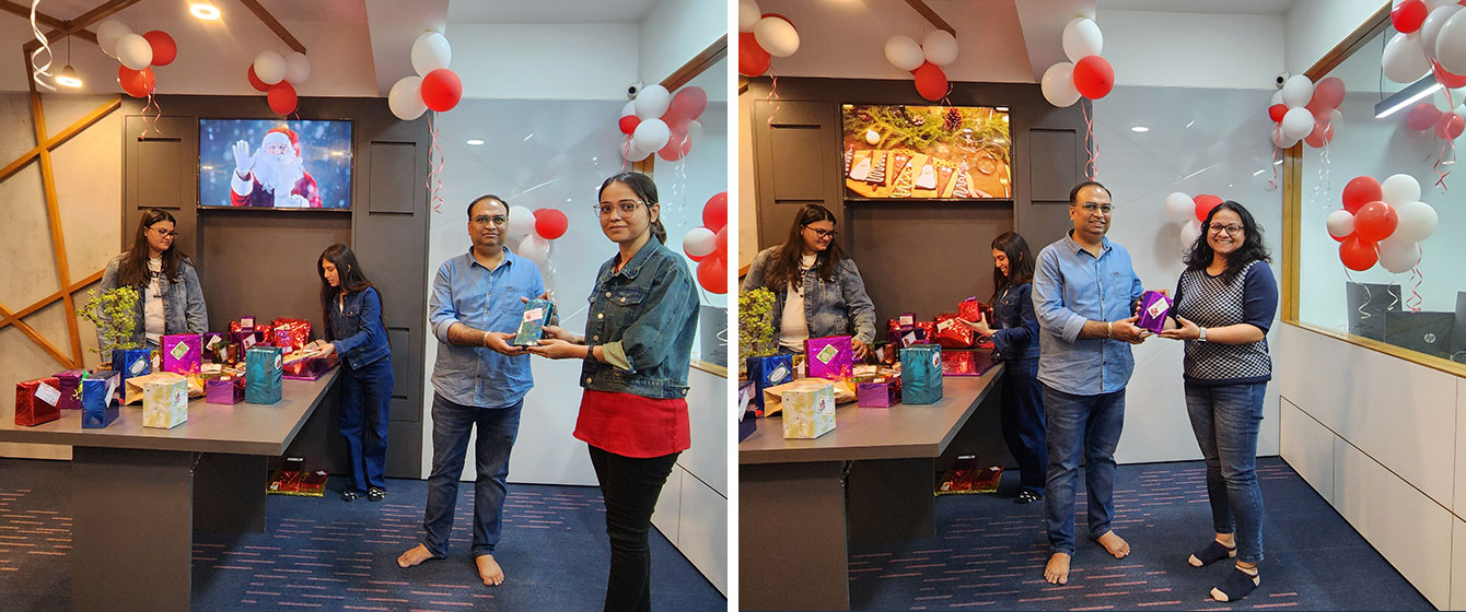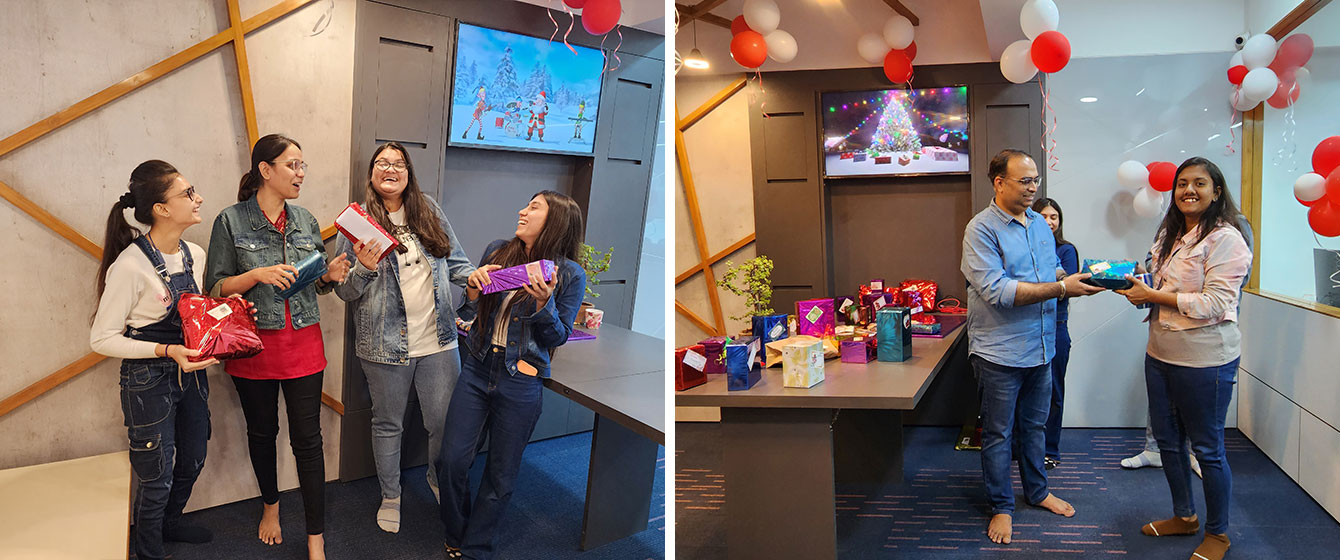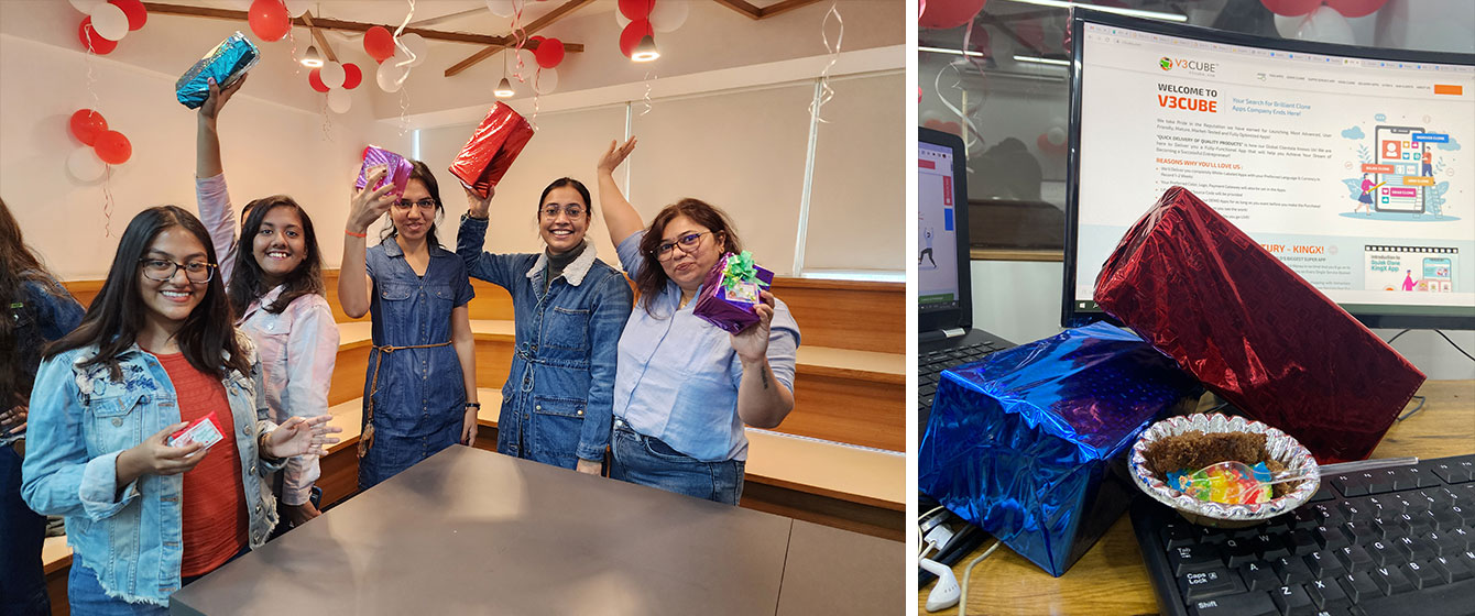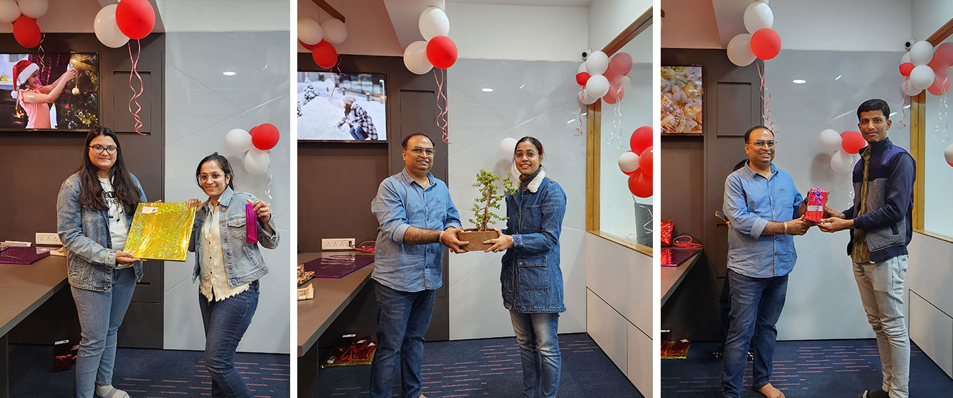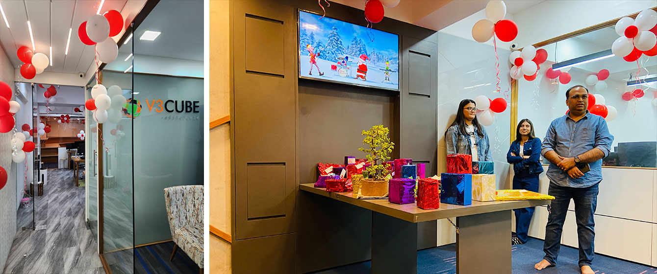 V3Cube has a tradition of celebrating Christmas with Secret Santa. And like every year, each member of the V3Cube team became a Secret Santa for ones whose name they picked from a bowl full of chits. And, they too received a gift wrapped in glittery papers and warm wishes! Everyone came dressed in denim outfits, carrying gifts and big smiles on their faces to the Head Office. And, to sweeten the memories, the entire team had the traditional lip-smacking Plum Cake!