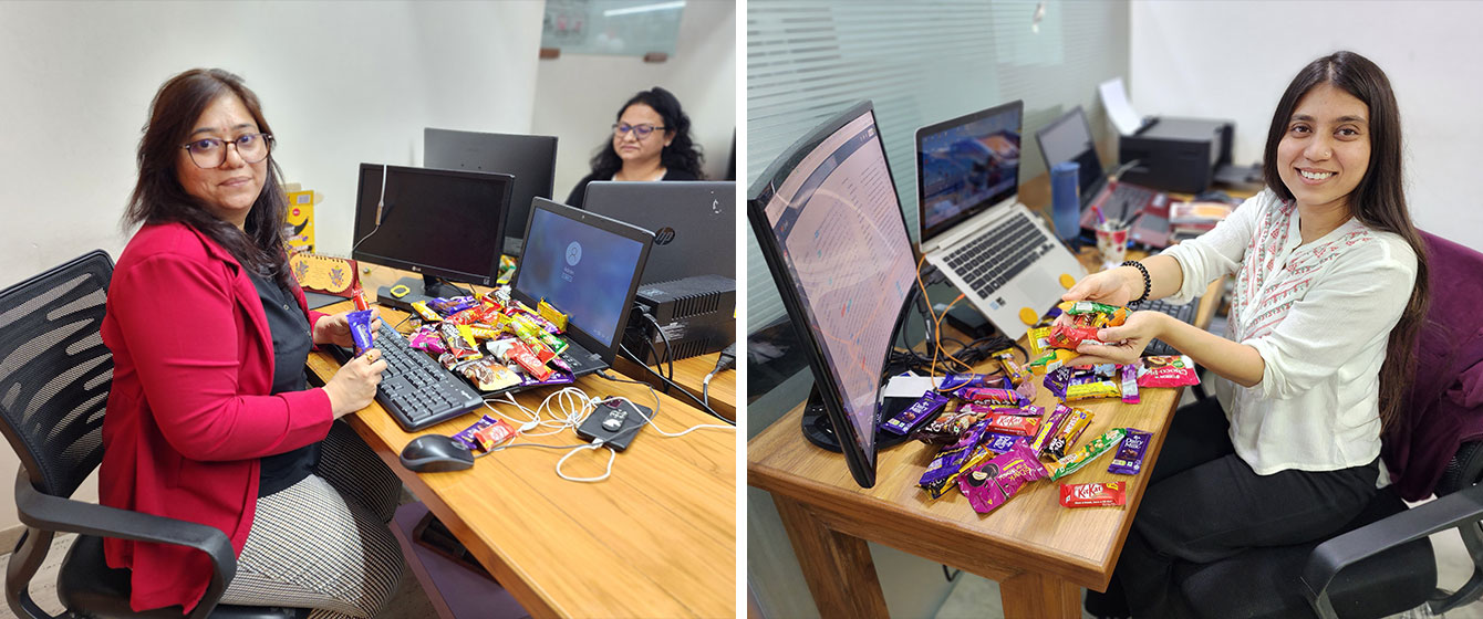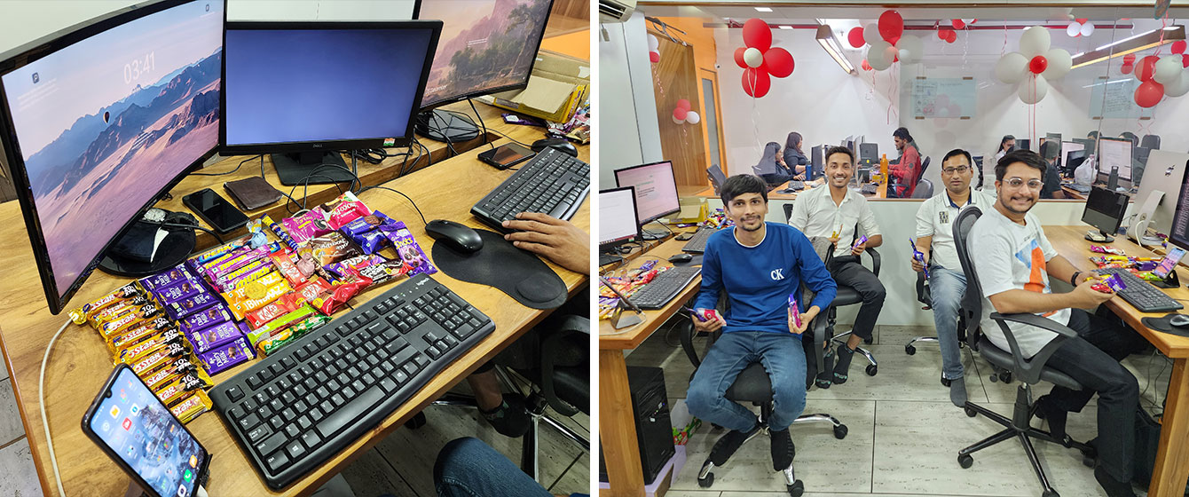 Donned in black & white outfits, every V3Cuber was feeling ecstatic today as we celebrated our team’s vividness and togetherness. Well, it was difficult to choose the best-dressed V3Cuber, but we managed to find our winners at last! Ah! But the fun didn’t end with just the matching dress code! Every team member came carrying boxes full of chocolates! We exchanged lip-smacking and drool-worthy chocolates to sweeten this bond of a big fat family!