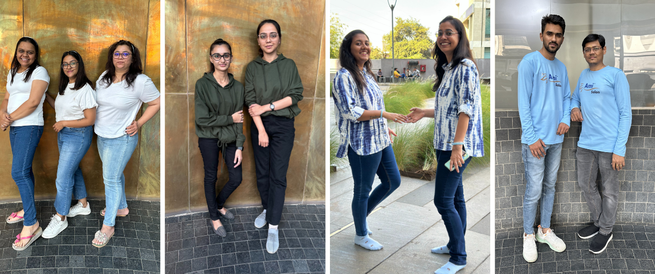 Can you guess the theme? Well, it’s twins' day at V3Cube’s Head Office! Everyone's a little too excited to show off their twinning outfits. V3Cubers know that smiling and laughing together is a way to make the bond stronger and wearing matching socks, shirts, hoodies, and hair clips is just another way to add a little extra love to the bond we share. Ah! And there were triplets too! Every team member had fun walking the office hallways with their twins, clicking a gazillion photos, and yes, storing these snapshots in their ‘fun memories' files, that they’ll never forget!