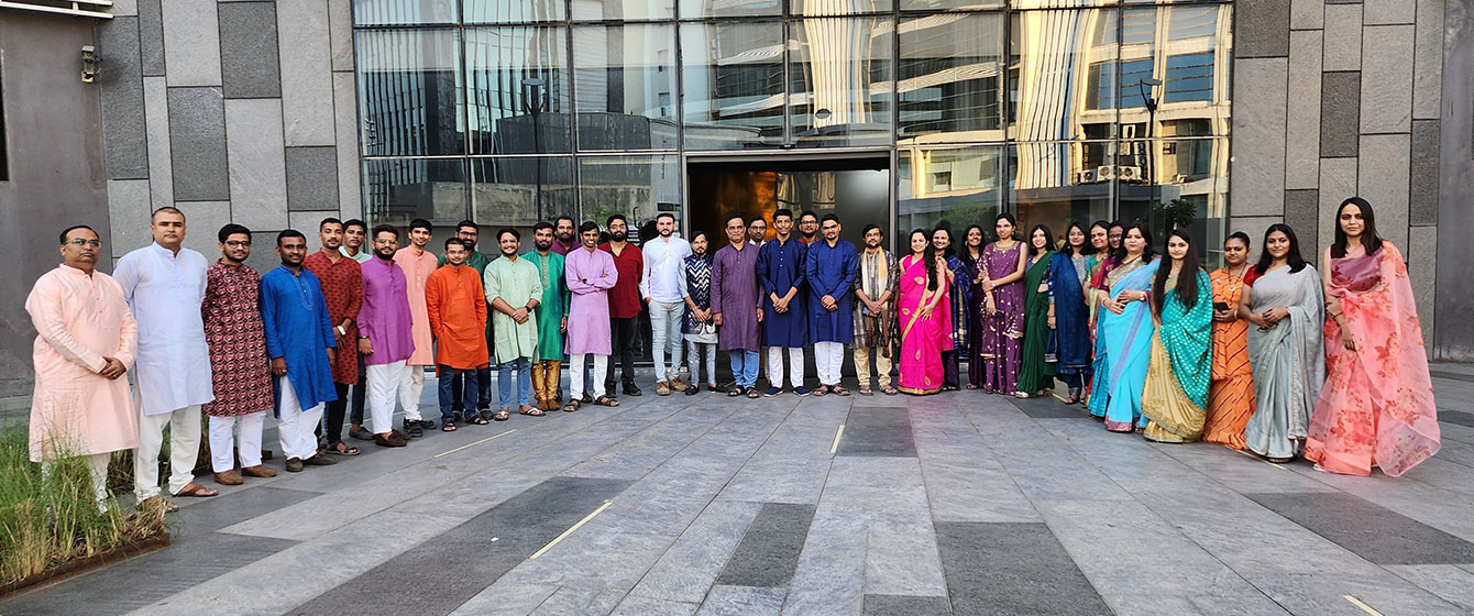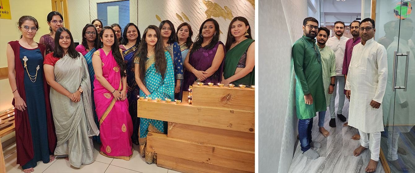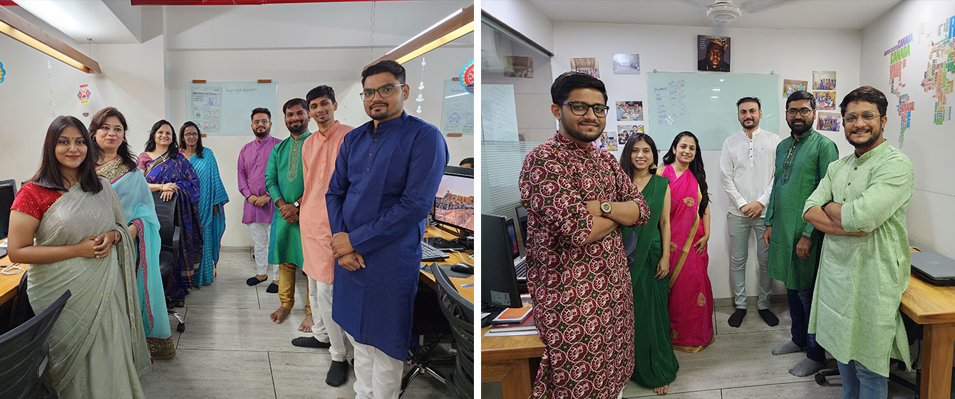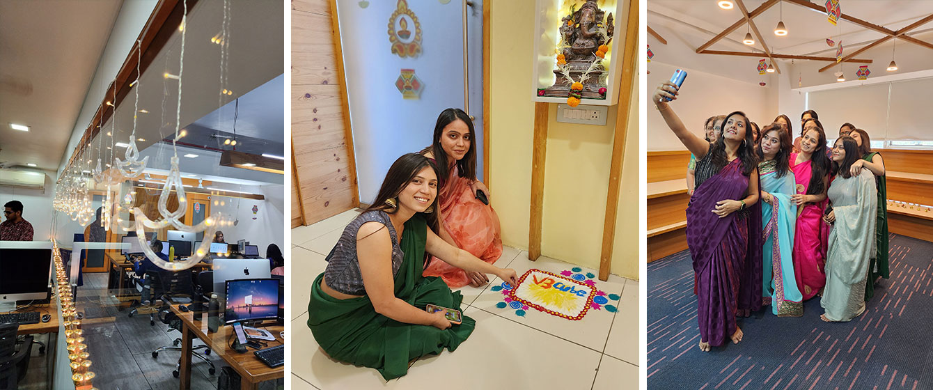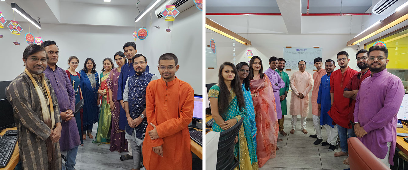 Diwali's contagious energy that brings family and friends close inevitably close but also infectiously spreads at the workplaces. The entire V3Cube team came together, all decked up in Indian Ethnic Wear to celebrate Diwali at the office.