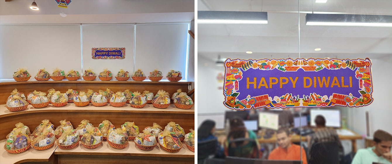 We believe in “Work Hard So That We Get To Celebrate Even Harder” - Being behind our Diwali celebration & organizing gives us double happiness in our work and all attempts. Among the most extravagant moments during the day were large gift baskets given to all V3Cubers.