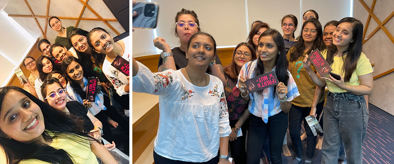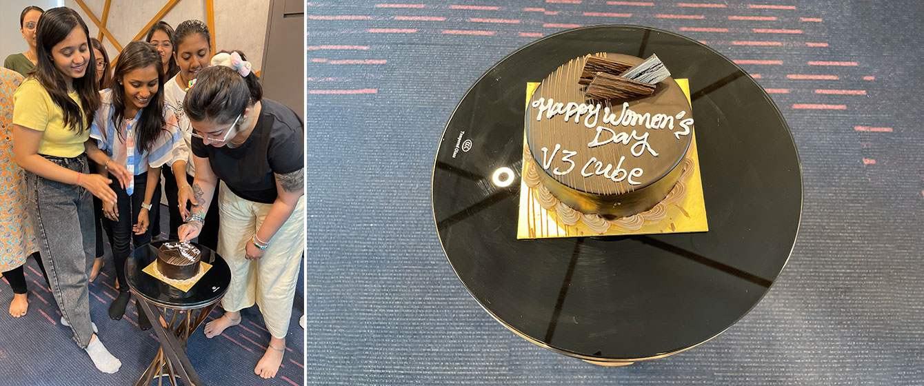 Each one of us had stuffed our Faces with Big Slices of Beautifully Decorated Chocolate Cake on the Occasion of International Women’s Day! We all were taken aback with such a Warm-Hearted Gesture of V3Cube! While we were busy celebrating this Joyous Moment with our Best of Friends, Our Senior Management Team was Cheering for us! See how Candid these Pictures are! Now, it was the Literal Chocolate Bar Shower! Every Woman Employee was Gifted a Big-Sized Dark Chocolate with their Individual Names on it with a Special Message! This Day couldn’t have been Better!
