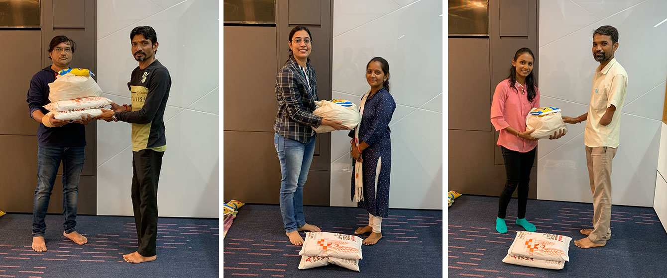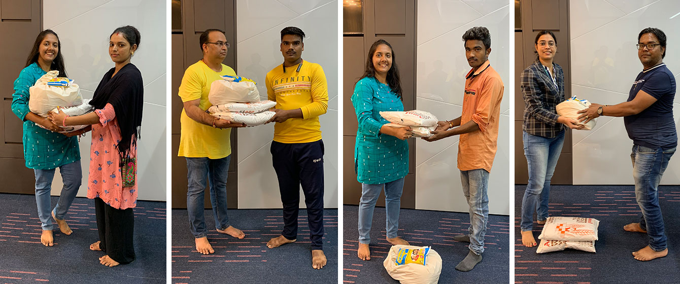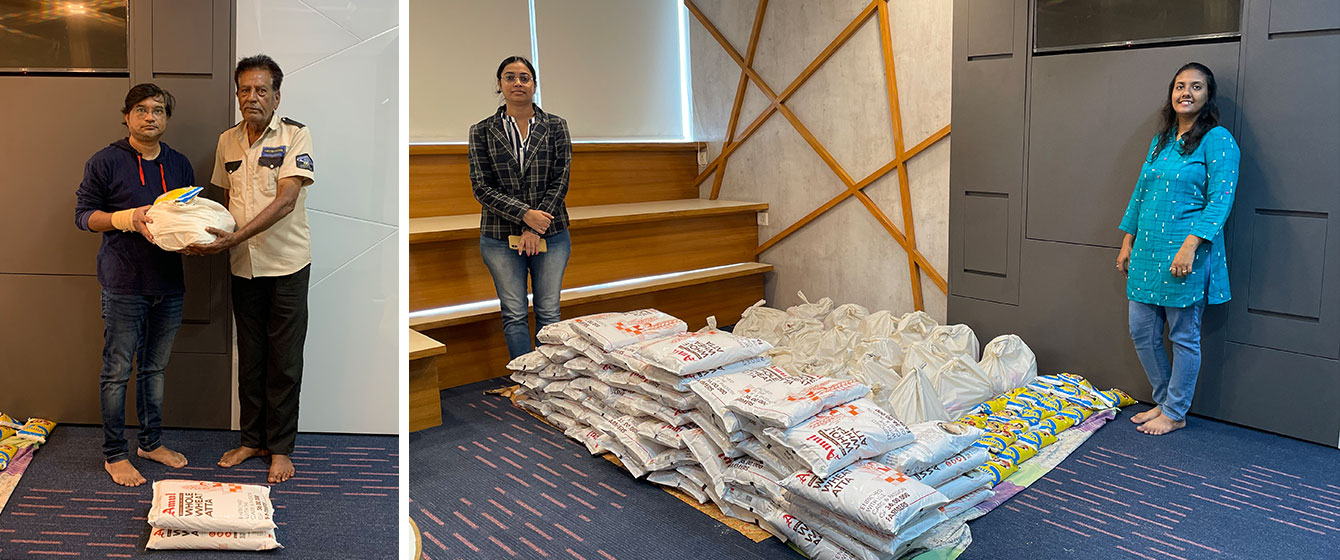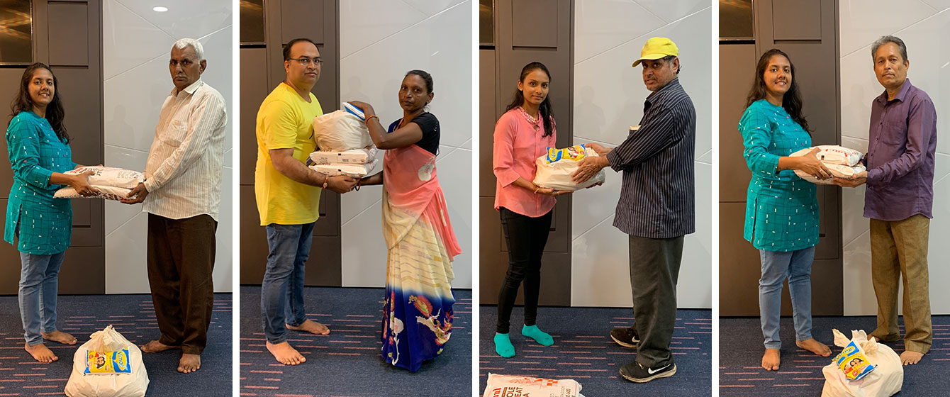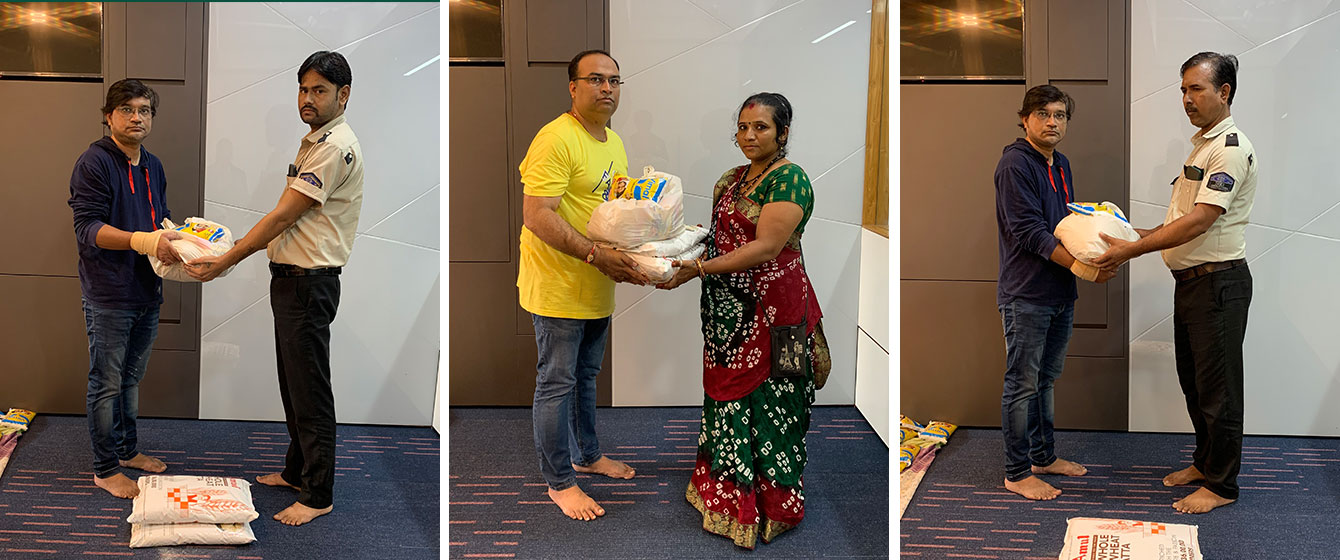 The management of V3Cube put together grocery bags and food supplies to distribute amongst the staff of their building such as housekeeping, security guards, and other premises maintenance personnel. Each member of the team distributed these goodie bags amongst the building staff to put a smile on their faces.