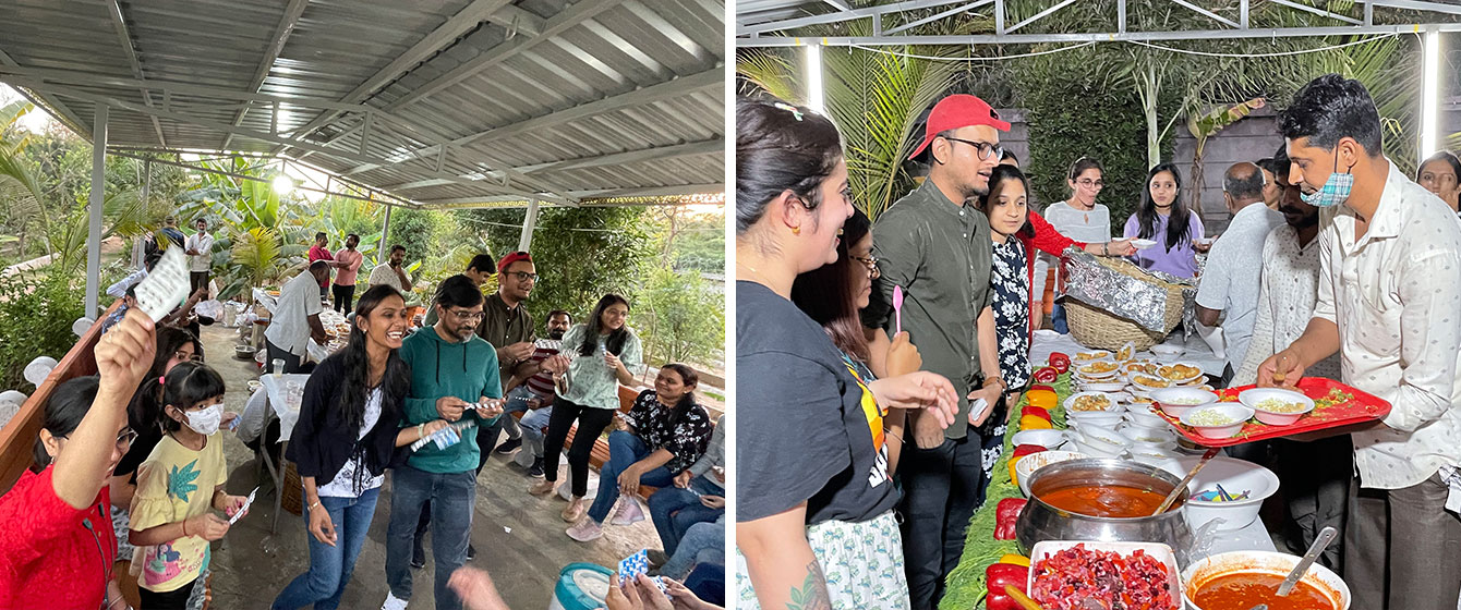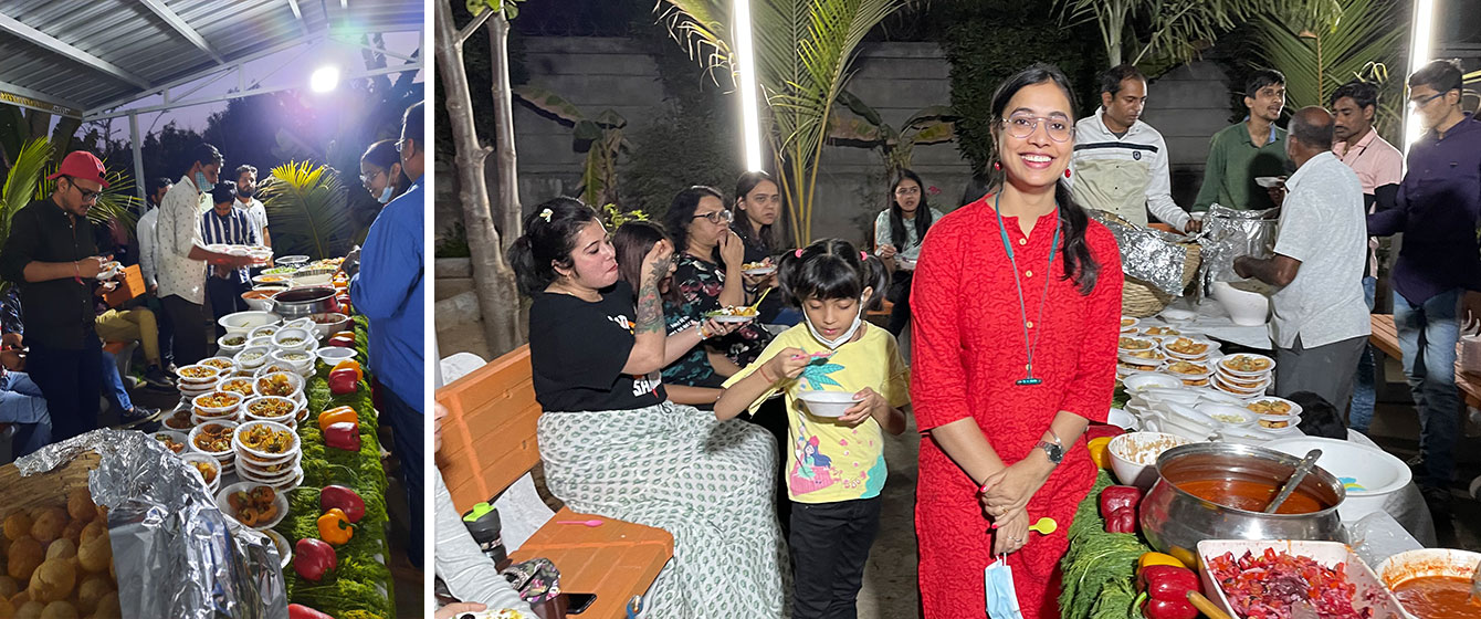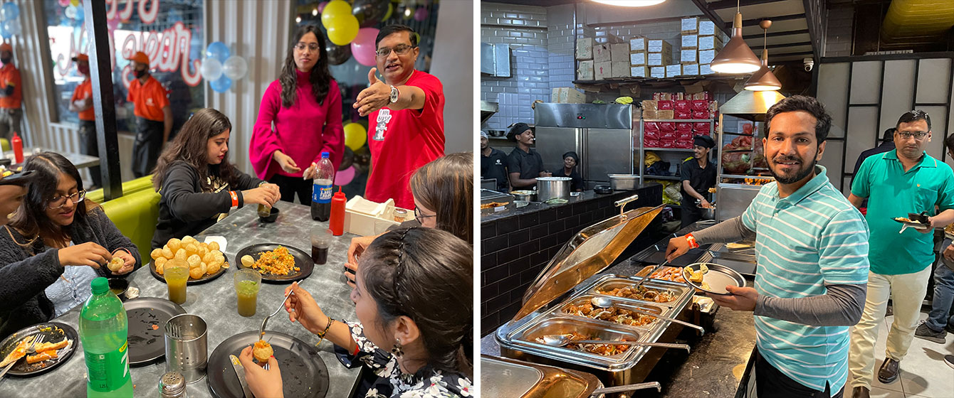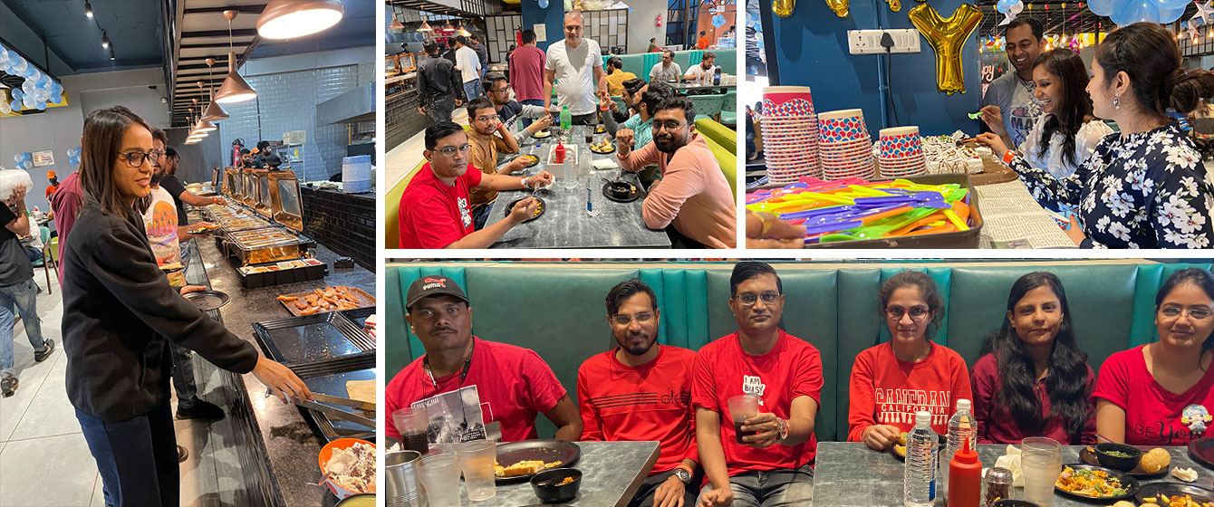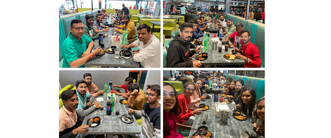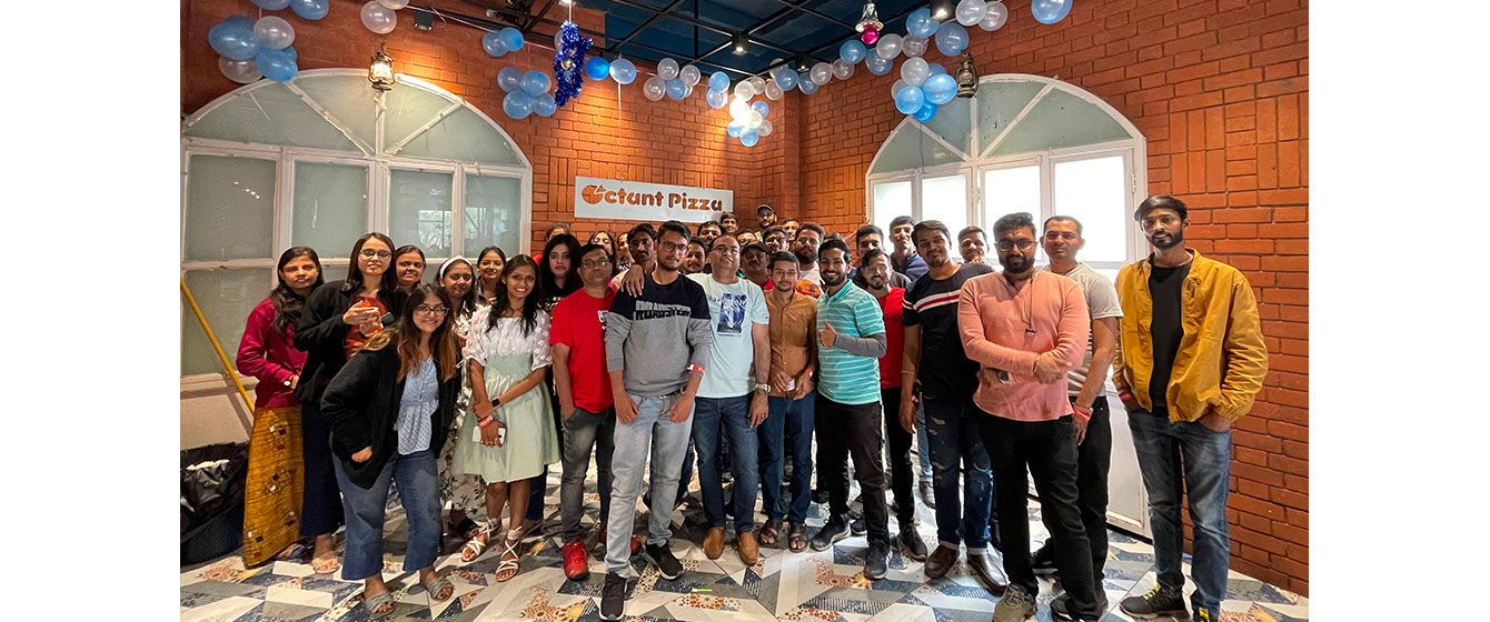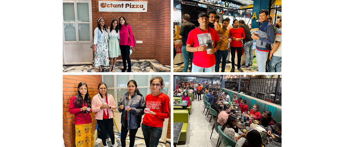 Saying Goodbyes is difficult and often leaves us teary-eyed, but V3Cube is bidding adieu to the year 2021 with gratitude in its heart and a smile on its face! The Senior Management Team spiked our last working day of the year 2021 with a Surprise lavish Meal at Octant Pizza. Every V3Cuber was treated with The Multi-Cuisine Buffet that had 101 Varieties. From Exotic Thin Crust Pizza to Butter Pepper Maggi, everyone was busy stuffing their faces with their favorite food. When some were gulping down steamy Hot & Sour Soup, others were crunching on Barbequed Sweet Corn!