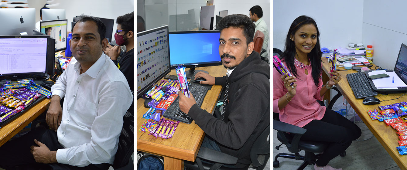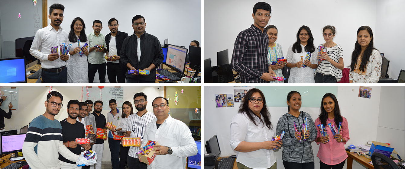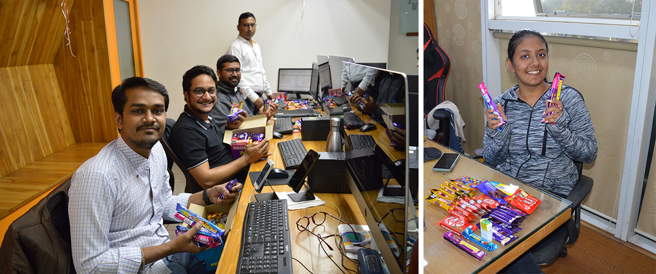 Have we begun manufacturing Chocolates? No! But we did celebrate Chocolate Day with every V3Cuber dressed in Black and White! The Fun-Factor didn’t stop at the Dress-Code for the Day, we all were asked to bring chocolates of our choice in abundance! Why? Each and every V3Cuber gave 1 Lip-smacking Chocolate Bar to each other. This literally meant Rain Shower of Chocolates and Candies at the Head Office of V3Cube! Cadbury Dairy Milk, Nestle’s Kitkat, Lotte’ Choco Pie, Home-made Date Sweets, you name it and we had it in our Tote Bags and Laptop Bags! There was sweetness not only in the hearts of every V3Cuber, but even the air had that aromatic sweetness of togetherness and Therapeutic-Essence of one Big Family!