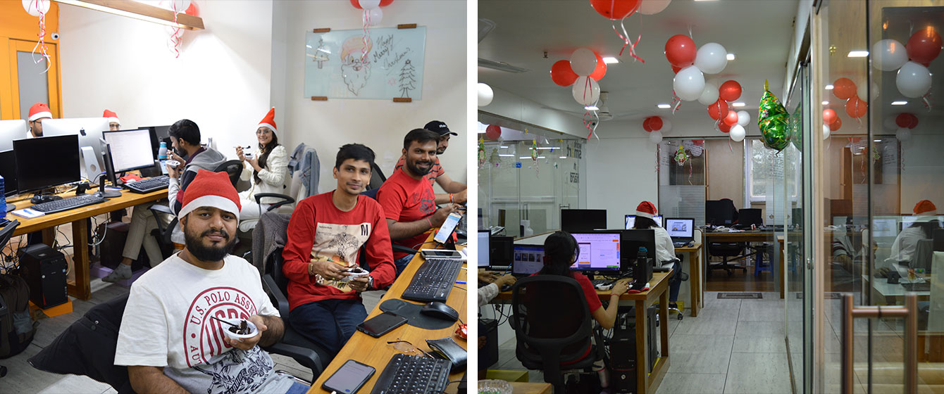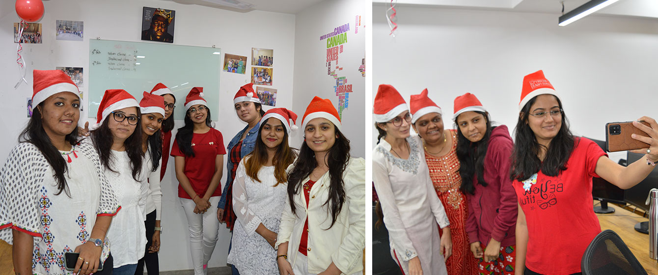 V3Cube has laughter and liveliness running through its veins! That is why they are always High-Spirited and in Festive Mood during the Winter Holiday Season! They celebrated Christmas in a way that stunned the world because it was a Carnival out here! Everyone was stuffing their faces with thick slices of Chocolate Cakes with a slight touch of the Traditions – Christmas Plum Cake was offered each and every V3Cuber! Each one of them tried their best to impersonate the Original Santa Claus but only two of us actually did and hence won the Exciting Gift Hampers!
