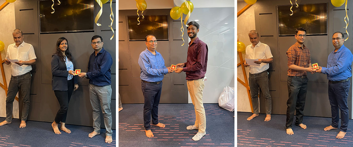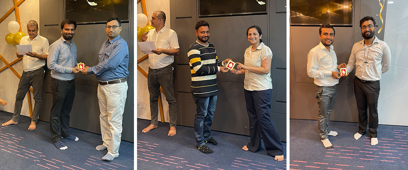 V3Cube celebrates its foundation day with just as much spirit and joy as every year. The management distributed silver coins to the entire team as a token of their appreciation for the hard work that each member put in, followed by cake cutting. Everyone had a lot of fun and the evening was filled with food and decoration.