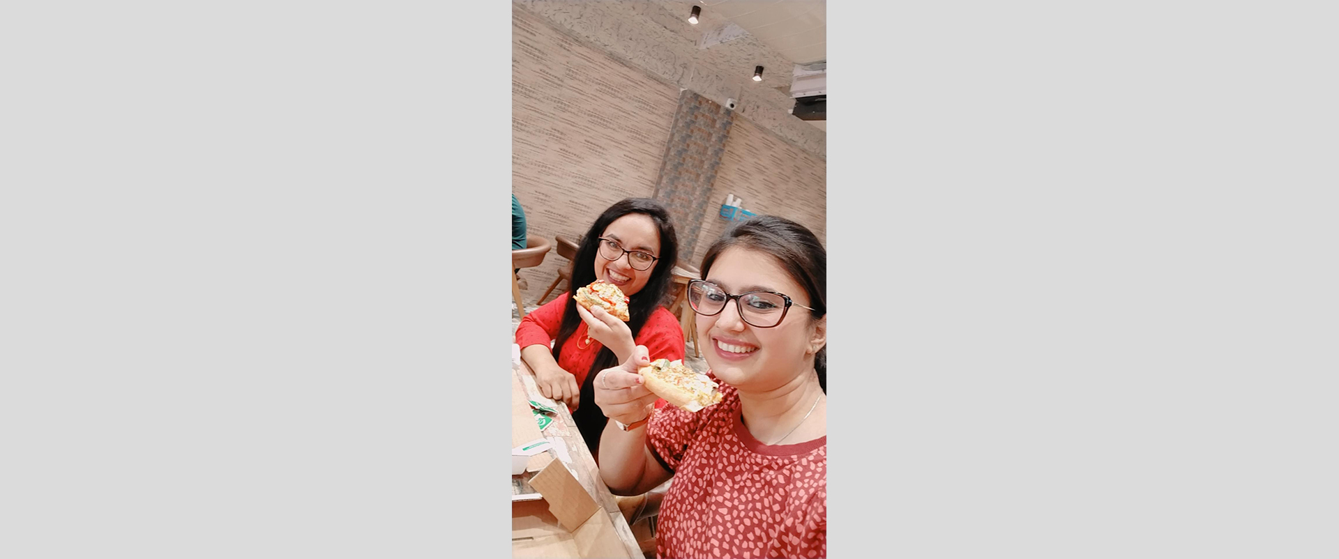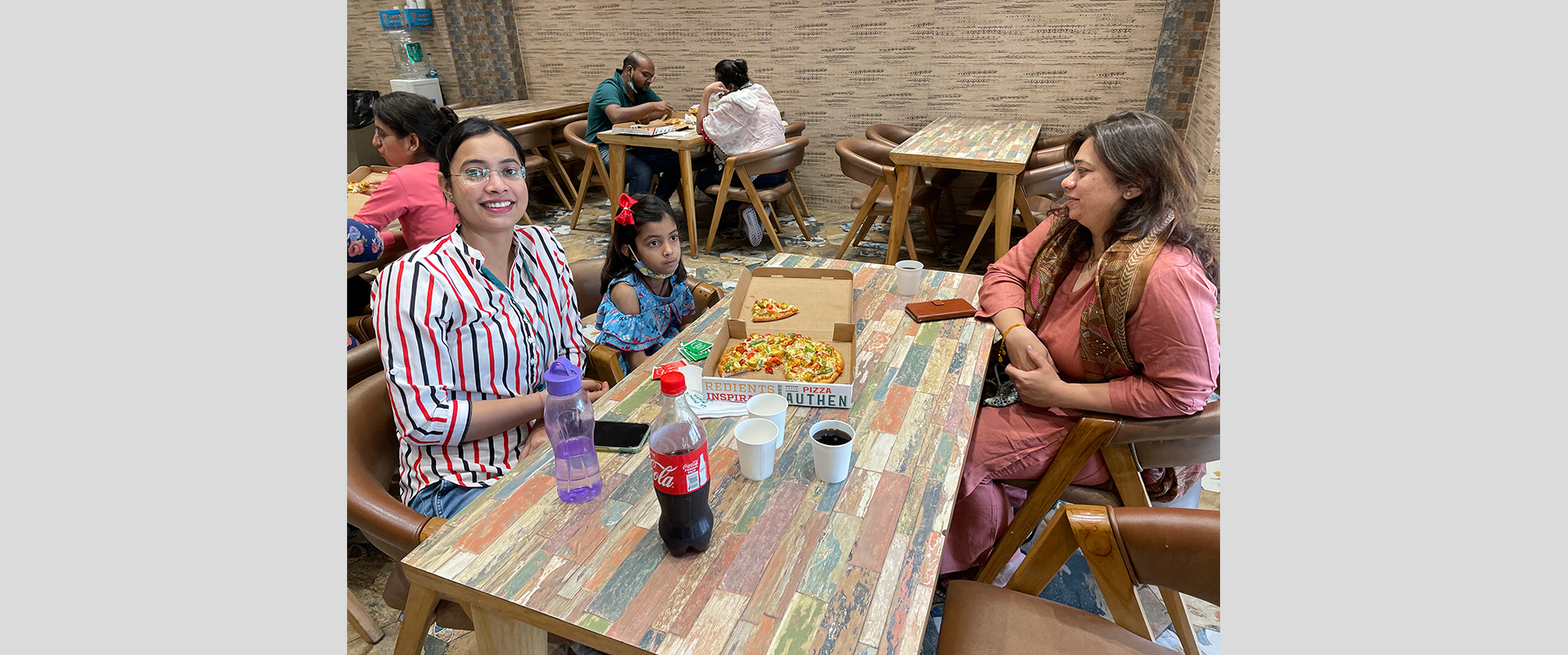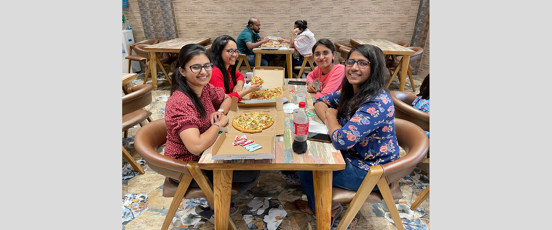 When 50% employees arrived at the office thinking it's just another Friday, V3Cube Management surprised them by announcing a pizza lunch party.