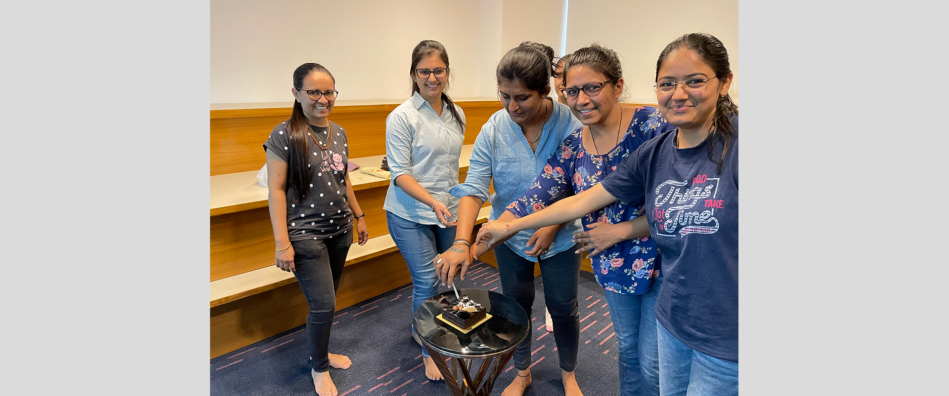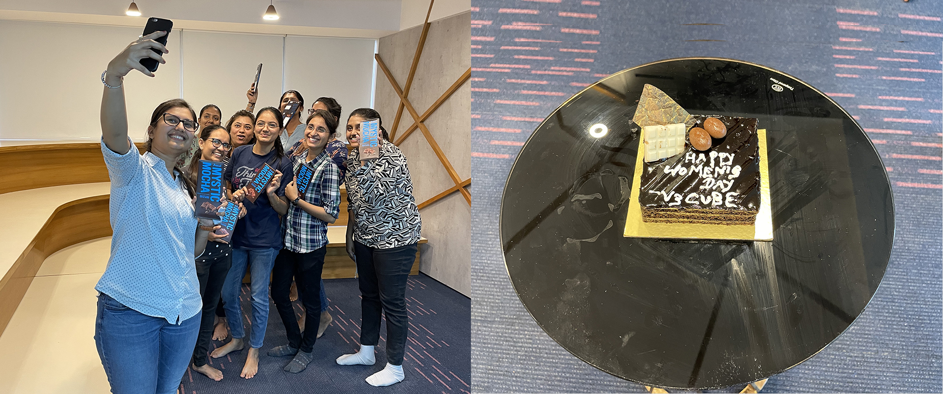 The lunch followed by taking lots of pictures and selfies creating happy memories.International Women’s Day Celebration At V3Cube - Cake cutting & Chocolate treats 8th March 2021