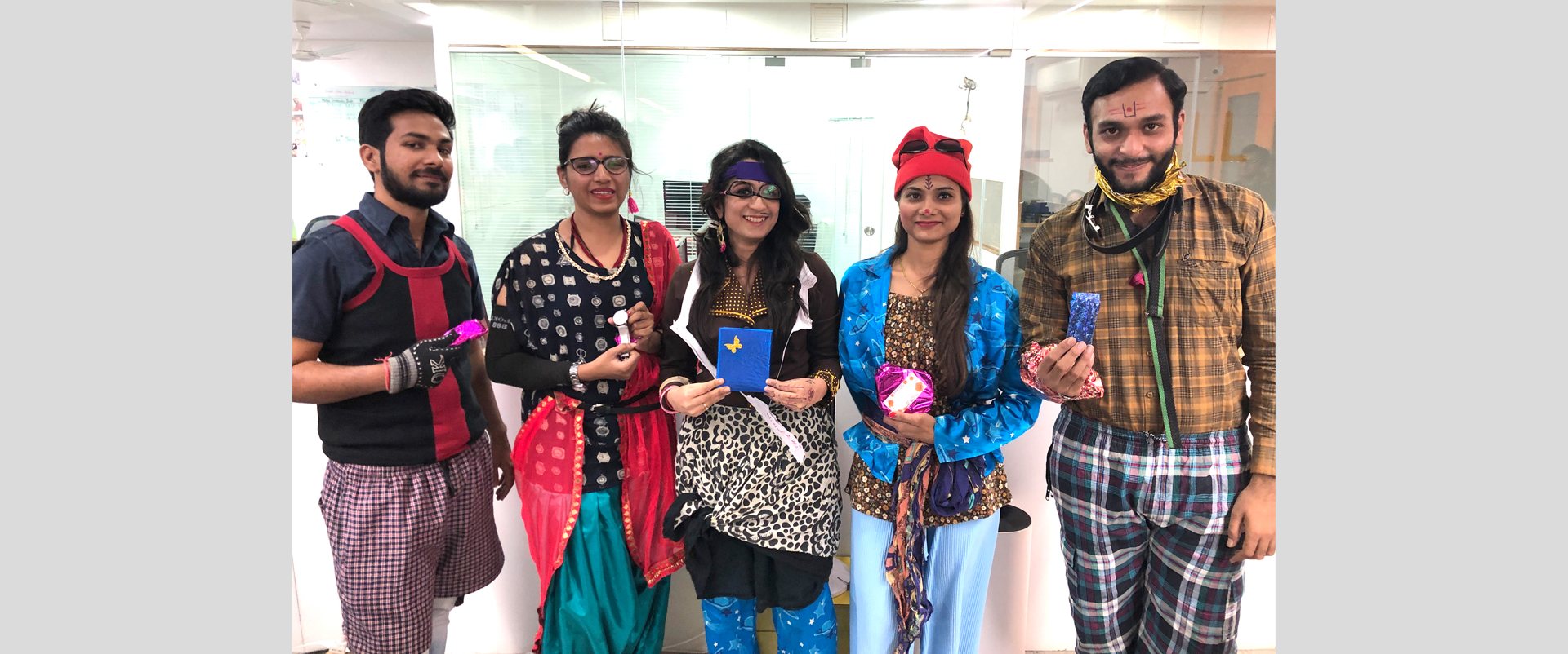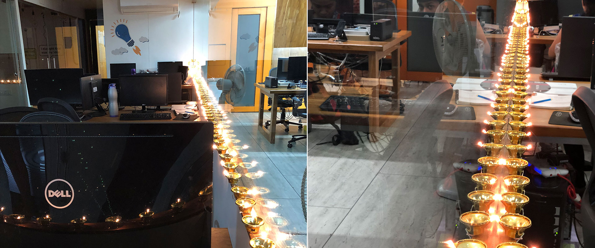 Then next day was a little crazy. We mismatched our clothing to spice it up a little. the creativity of the team members was absolutely stunning! Everyone had a bellyful of laughter while admiring the crazy and weird clothes we had adorned!COLOUR, Rangoli AND FESTIVITY AS V3CUBE CELEBRATE DIWALI - 2018