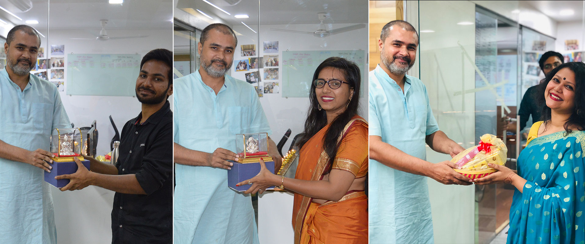 The V3CUBE team celebrated Diwali with great enthusiasm, pomp, colour and vibrancy. The team wore colourful traditional outfits to mark the occasion, decorated the office and made a beautiful Rangoli in the morning. After some fun and festivities, they all had lunch. Gifts were distributed to each and every employee and after a photo session the day ended all too soon.