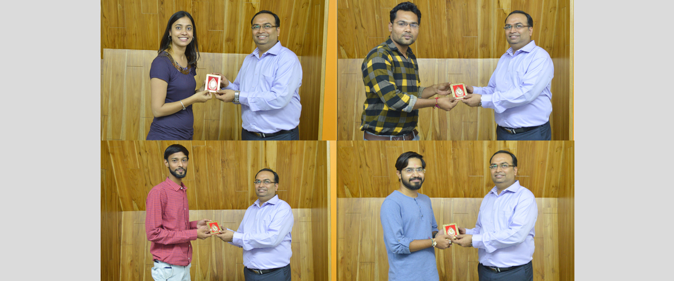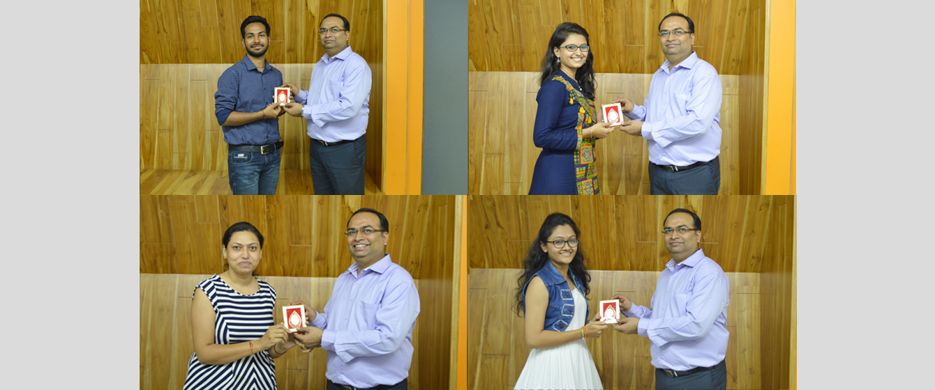 The management gave out Gold and Silver coins to all the members of the V3Cube family who have been associated with the company to reward them for their loyalty and hard work. Our team has been a strong pillar for our success. We value the efforts each member of our office has put in towards delivering the best solution to our clients. The management called out every single employee and appreciated their efforts.