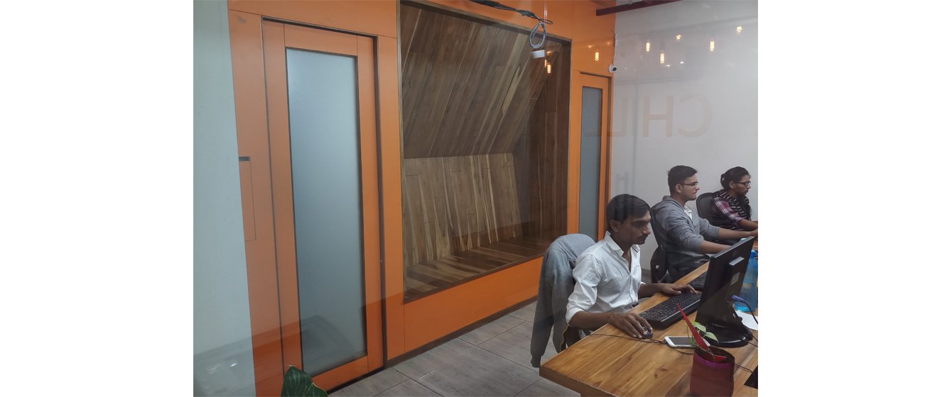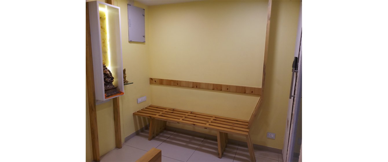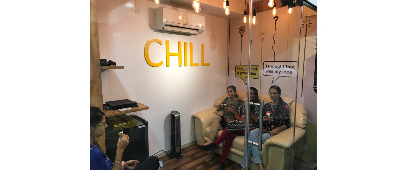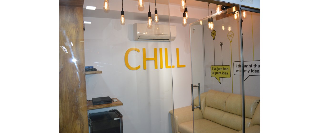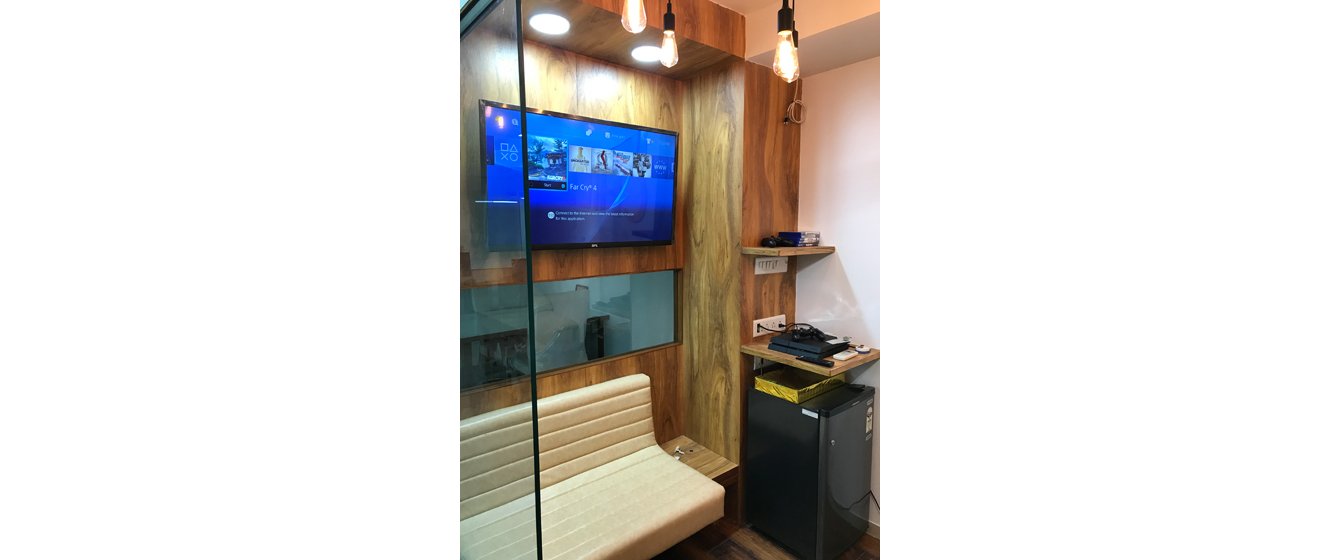 Lounge: Starting with our lounge, it is the most happening part of the new place. With ivory sofas and a wooden decor, the lounge just invites joy. Fully equipped with PS4 games, a refrigerator and television set, this area is sure to energise all our hard working professionals after their breaks.