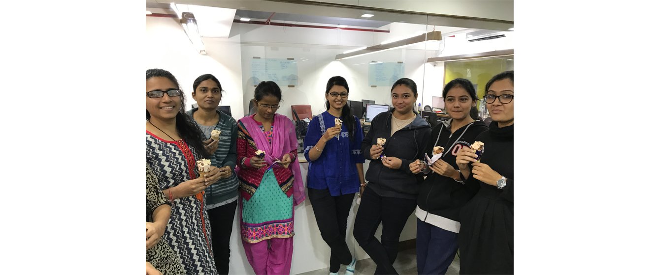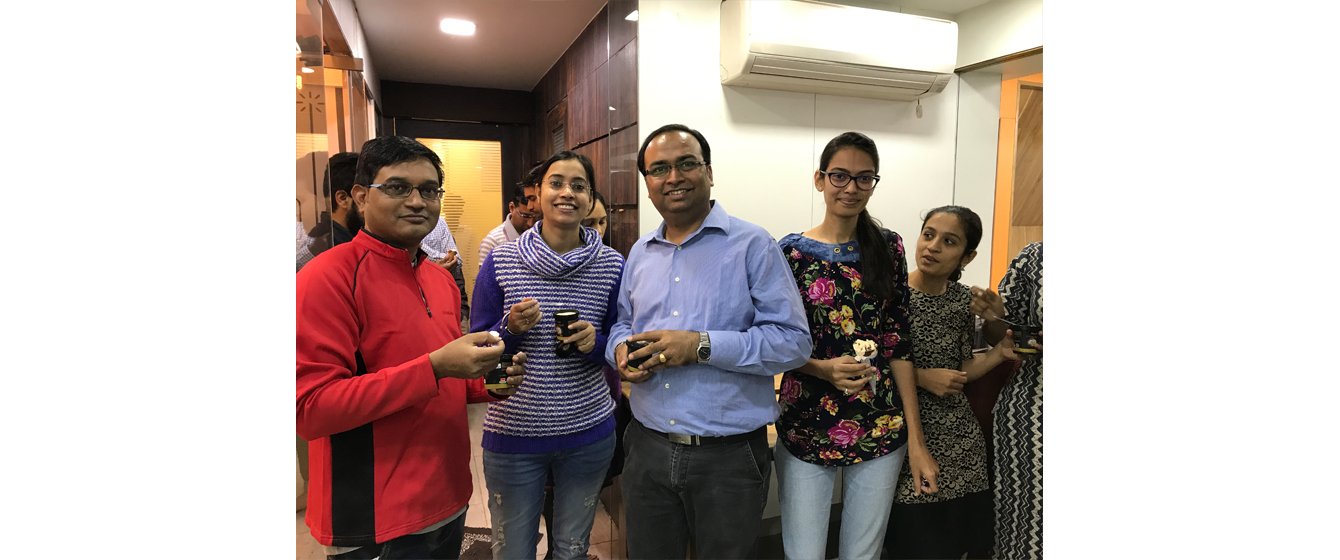 The staff all wore colourful traditional outfits to mark the occasion, decorated the office and made a beautiful rangoli in the morning. After some fun and festivities, they all had lunch. This year, although some food was ordered from a caterer, the team broke the tradition such that every staff member bought a dish too. The different flavours, colours and textures of the delicious food were enjoyed by all in the true spirit of the occasion. Sweetmeats were distributed in the evening to all staff and after a photo session the day ended all too soon. A celebration indeed that ended too soon.