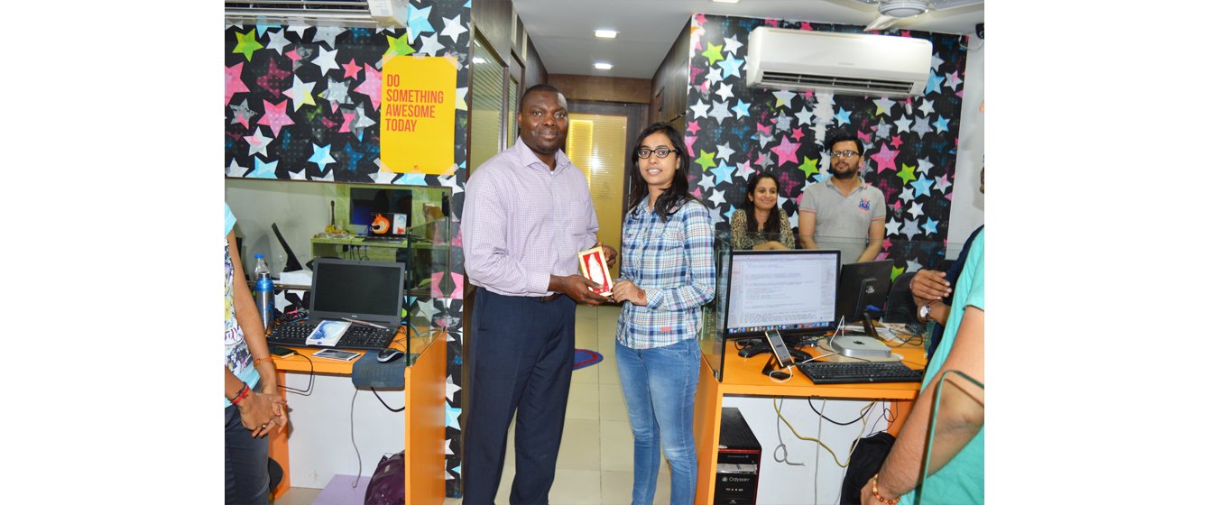There is no better way of appreciating the dedication and commitment of an employee than celebrating their work anniversary and making that day special for them. That is exactly what V3CUBE does. This year, Rajni Prajapat completed 5 years at the company. To mark this milestone on her professional calendar, she was presented with a gold and silver coin by the company. The presentation was done by an international client who happened to be visiting the company on that day. The client was indeed privileged to honour this hardworking employee on behalf of V3CUBE. Congratulations Rajni.