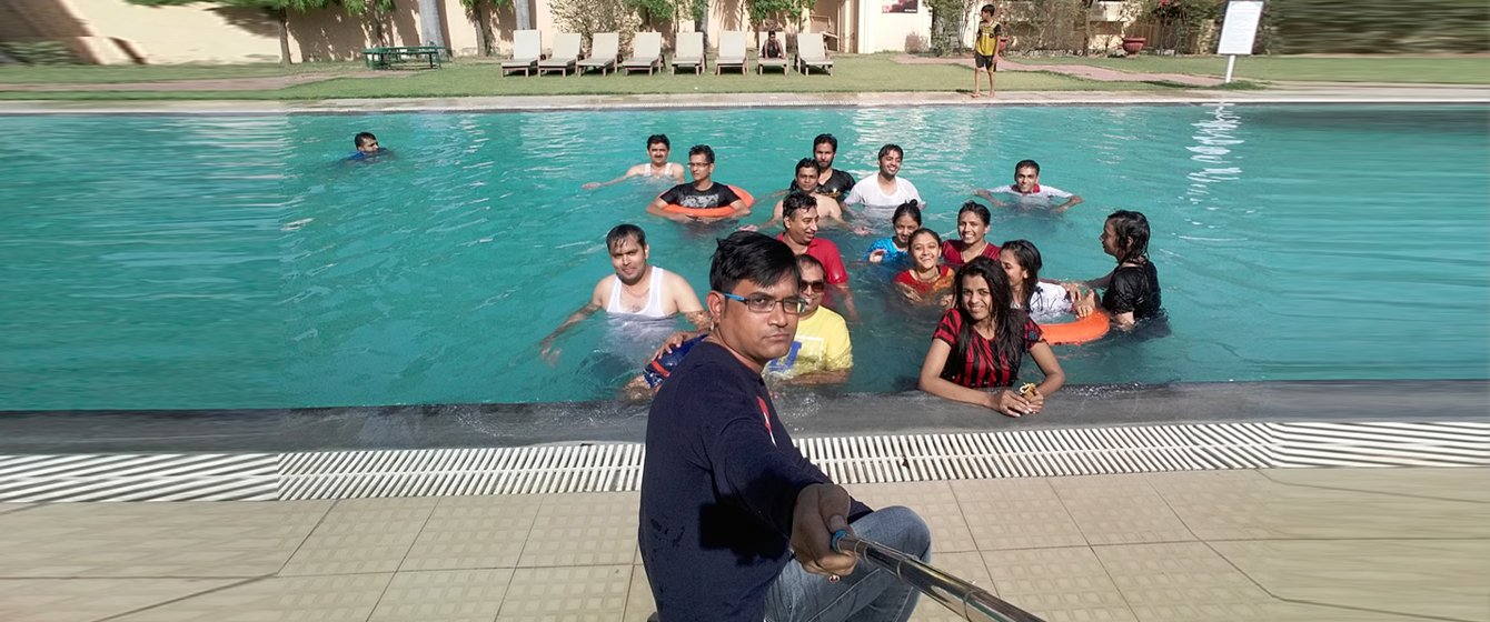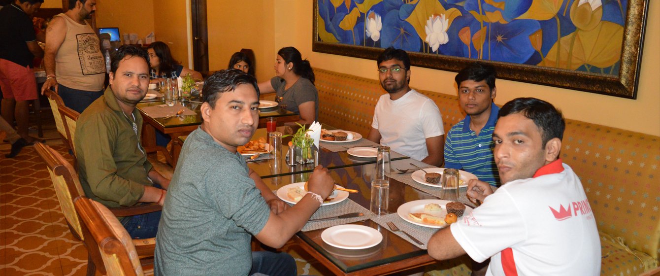 Hard work by the team is always appreciated by the management at V3CUBE. That is why this year the team was treated to a surprise trip to the majestic "Justa Rajputana Resort" for a chillaxing weekend in appreciation of their hard work. Unfortunately, the surprise trip meant that various team members already had plans for the weekend so could not make it, but those who went had an absolute blast. A van and two cars transported the team to Udaipur, the City of Lakes. They left early in the morning on the 20th and reached the resort at about noon where everyone enjoyed a delicious luncheon.