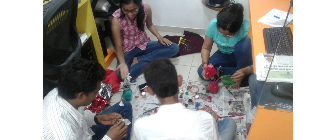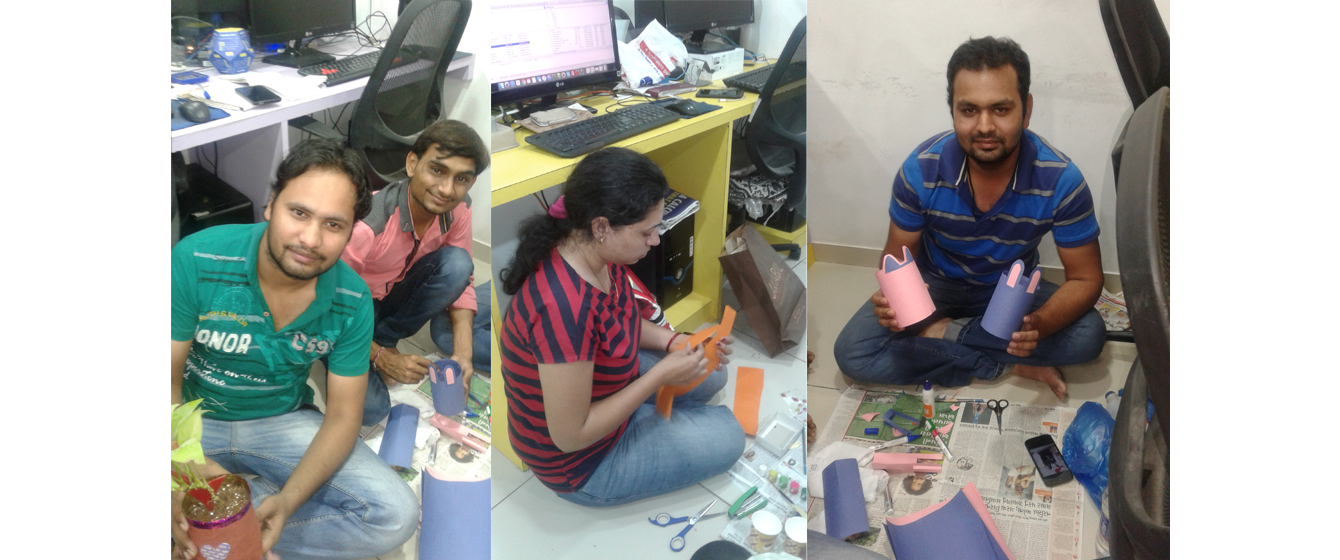 Diwali is a festival that is celebrated with great pomp and ceremony. The V3CUBE family starts the festivities a few days in advance to the countdown for the big day. This year a day was dedicated to Diya decoration competition and best out of waste competition. The day was spent in healthy competition with each other in a bid to decorate the best diya and to make the best item from waste. A selection of diyas of all shapes and sizes were decorated. The best part of the day was the best of waste competition as every member racked up his / her brain to come up with innovations from the waste. We reminisced our school days and our craft lessons, bringing back nostalgic memories of a time gone. We surely have come a long way since then….