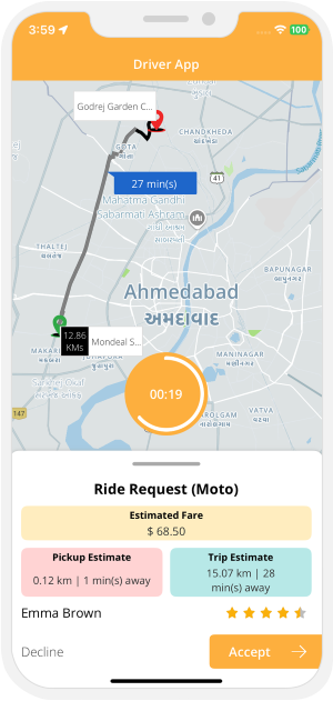 The notification sounds may include the request sound, message sound & VOIP based (voice over internet protocol) call for the Driver and Rider.